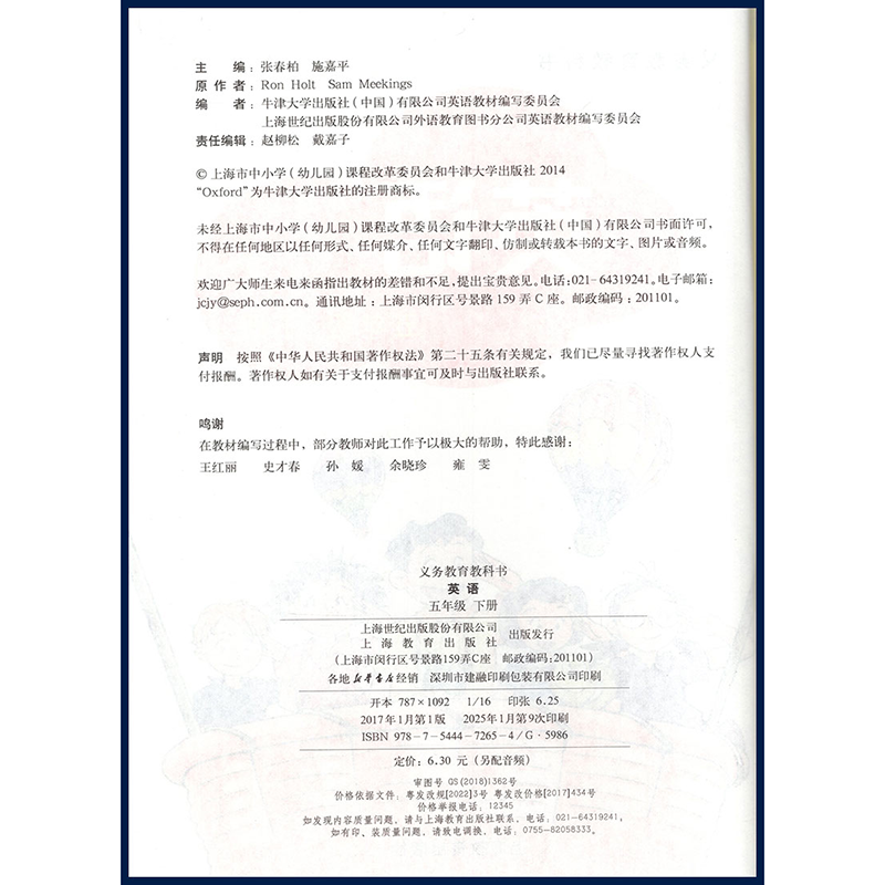 2025春英语义务教育教科书 小学五年级下册英语上教版 英语教材课本义务教育教科书5年级下册英语小学教材全解 上海教育出版社