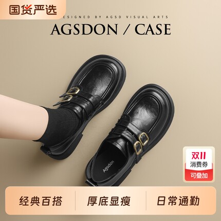 奥古狮登乐福鞋女2025秋季新款黑色粗跟小皮鞋英伦风秋冬通勤单鞋