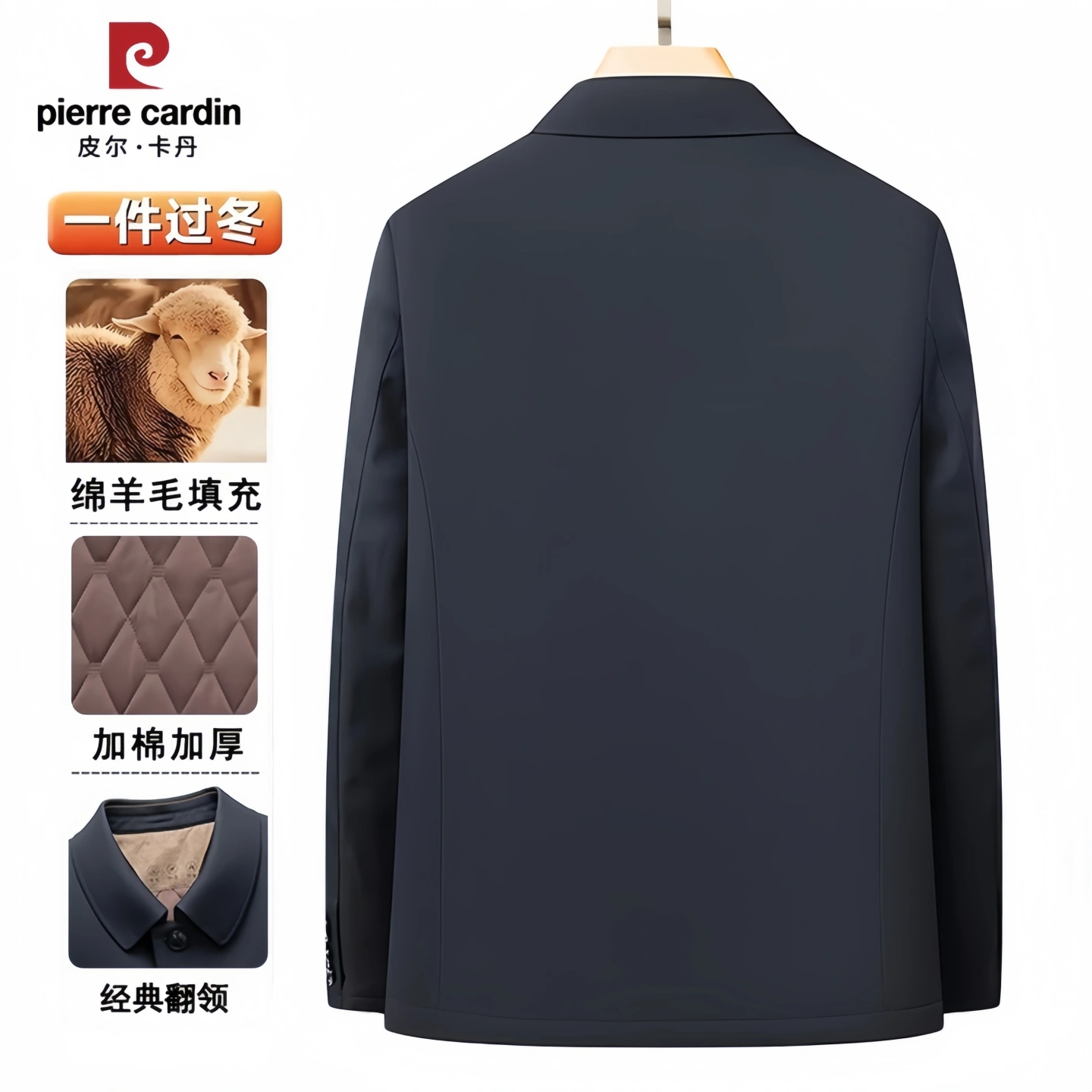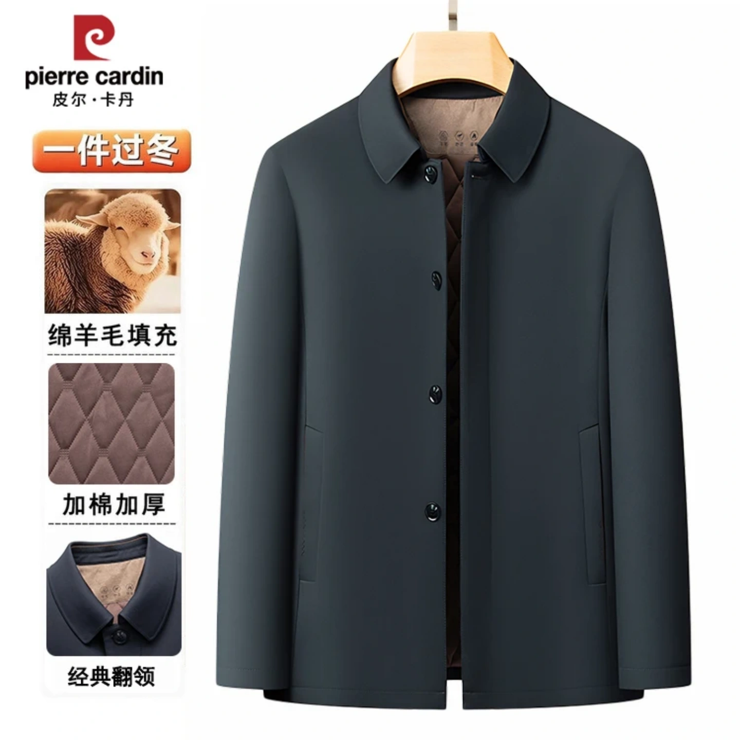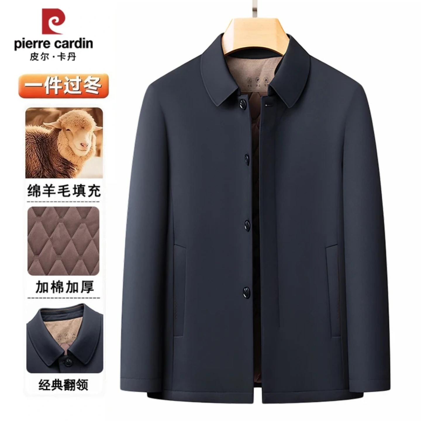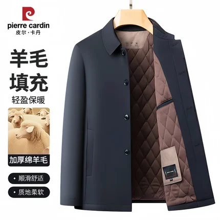 皮尔卡丹男士【内胆含羊毛】保暖棉衣夹克中老年秋冬爸爸加厚外套