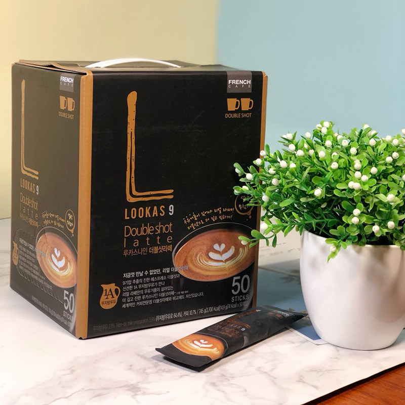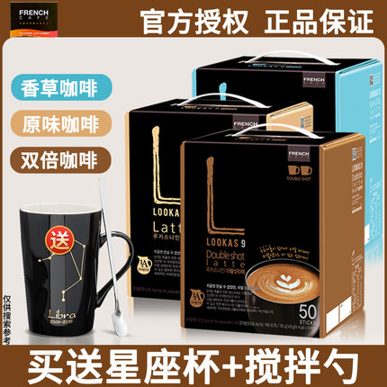 韩国进口南阳lookas9双倍拿铁含脱脂奶原味速溶咖啡粉50条礼盒装