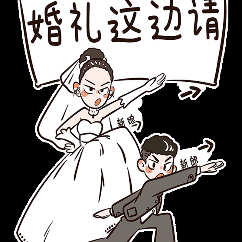 结婚订婚婚礼布置装饰卡通人形手绘迎宾立牌kt板定制指引牌指示牌