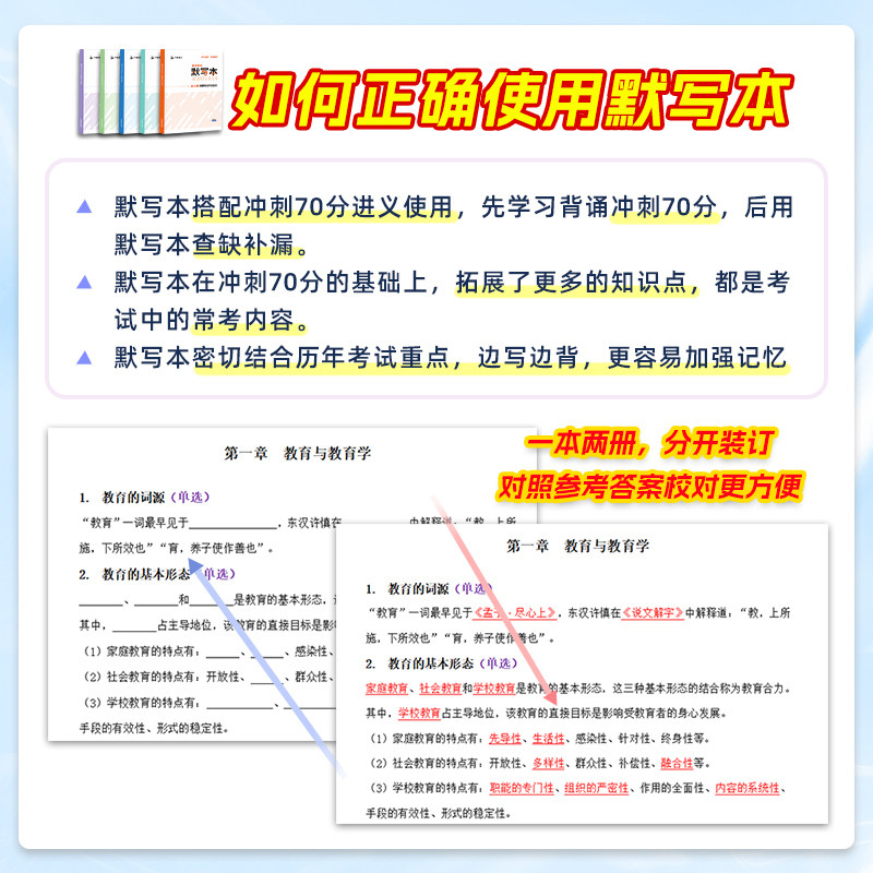 [学丞]卢姨教资笔试2026上半年冲刺70分幼儿园小学中学初中高职教师资格证教材真题考前背诵资料综合素质教育教学知识与能力默写本