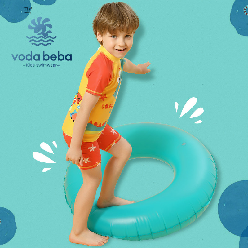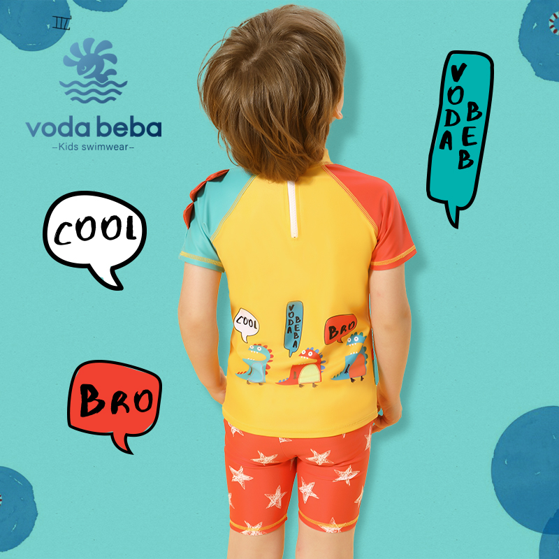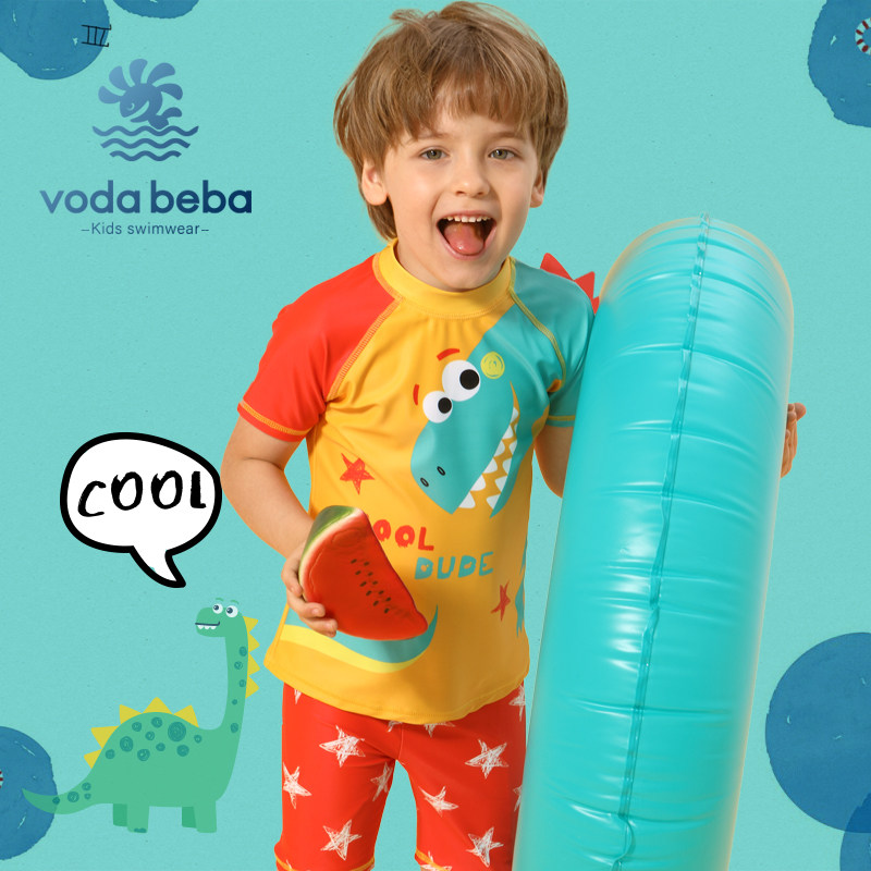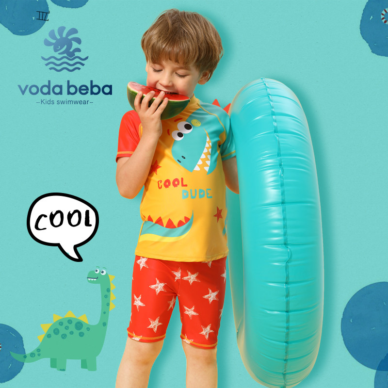 Voda Beba儿童泳衣男童宝宝中大童恐龙短袖分体防晒速干泳衣裤