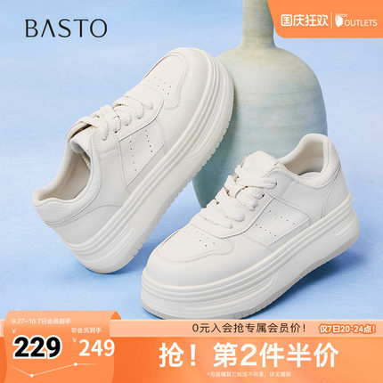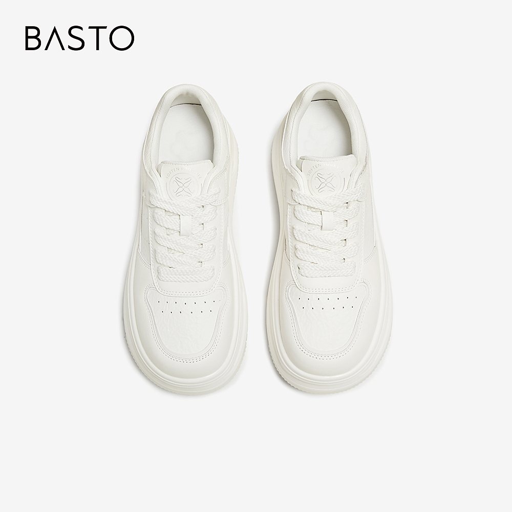 百思图2025秋季新款时尚户外街头运动小白鞋厚底女休闲鞋D3116CM5