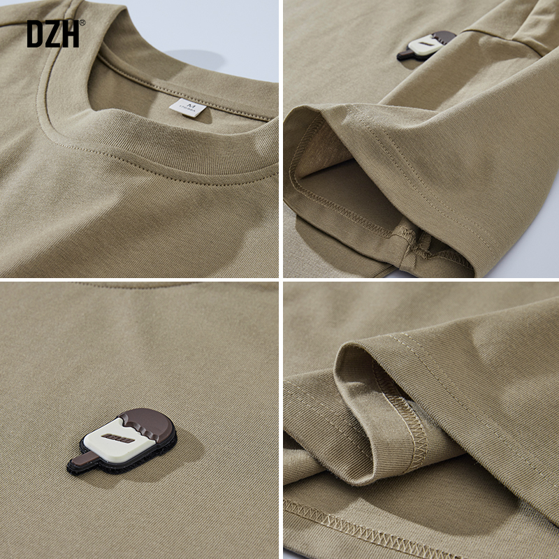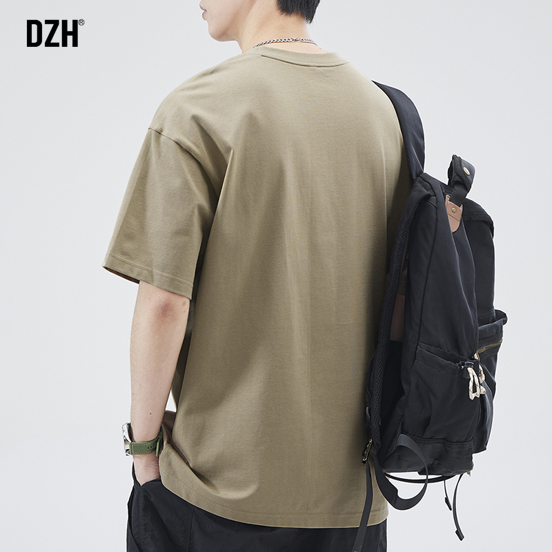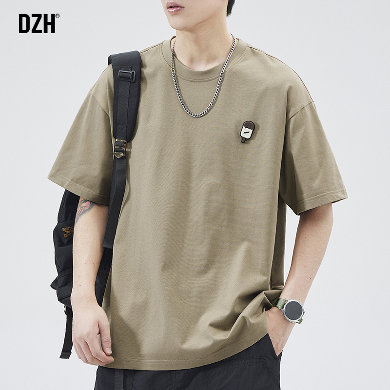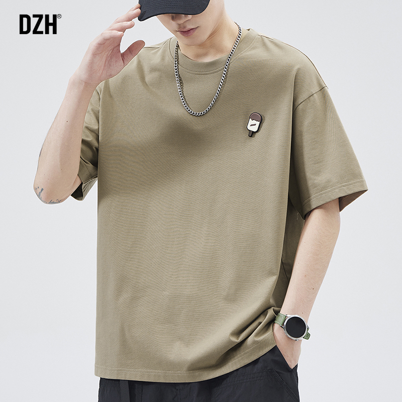 男士卡其色短袖t恤男款夏季重磅纯棉男装2025新款上衣圆领体恤衫
