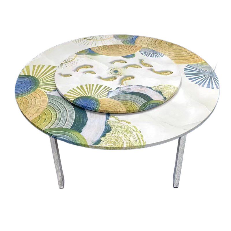 不锈钢圆桌带转盘可折叠桌子圆形加厚3D彩图家用餐桌大小户型饭桌