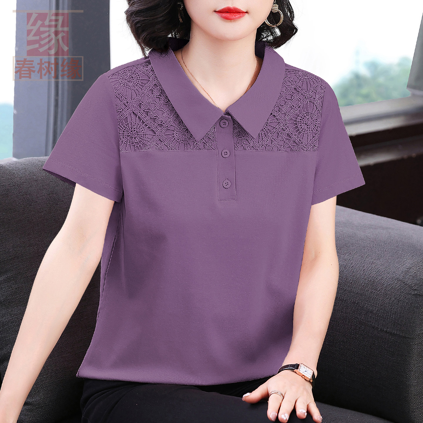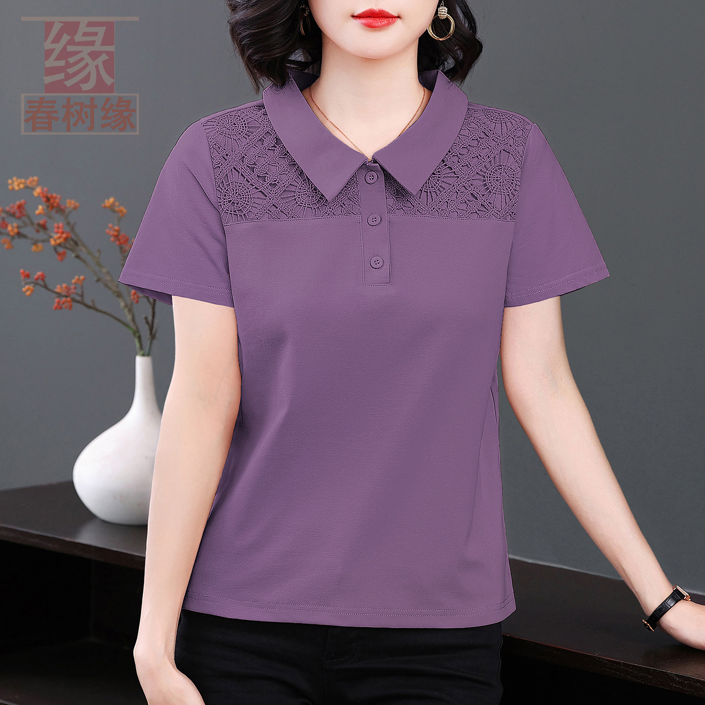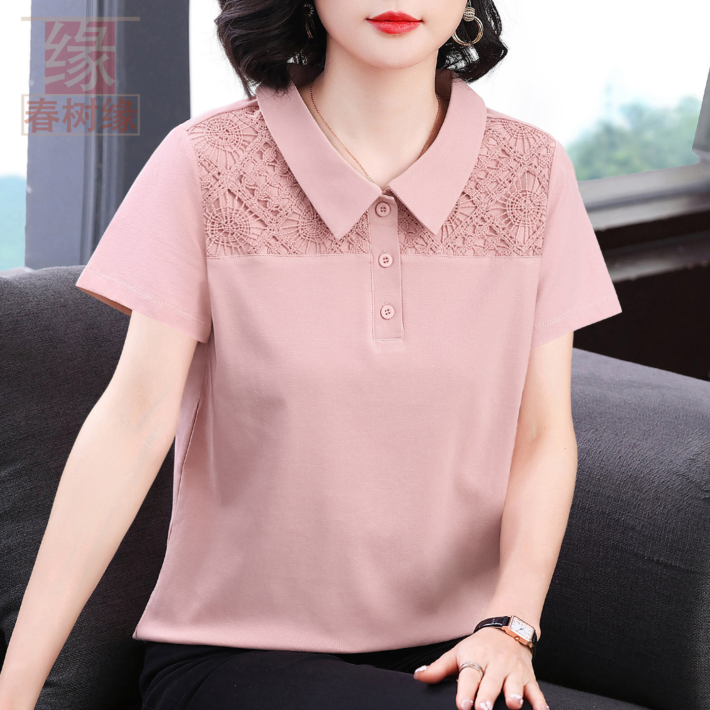 春树缘纯棉有领短袖T恤女