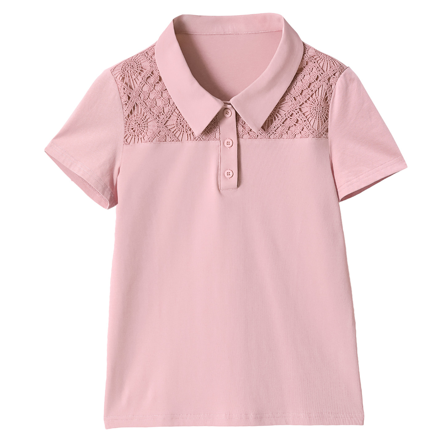 粉色纯棉polo领短袖T恤女夏新款时尚拼接妈妈装纯棉宽松翻领上衣