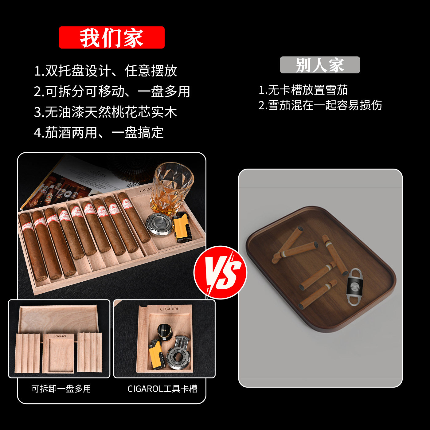 雪茄托盘全实木烟盒专用展示架可拆卸放茄酒工具个性创意醒茄托盘