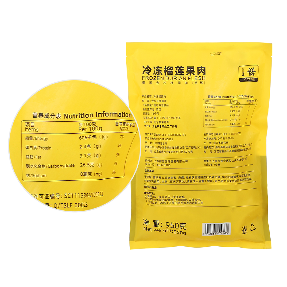 猫宝泰国金枕冷冻榴莲果肉950g
