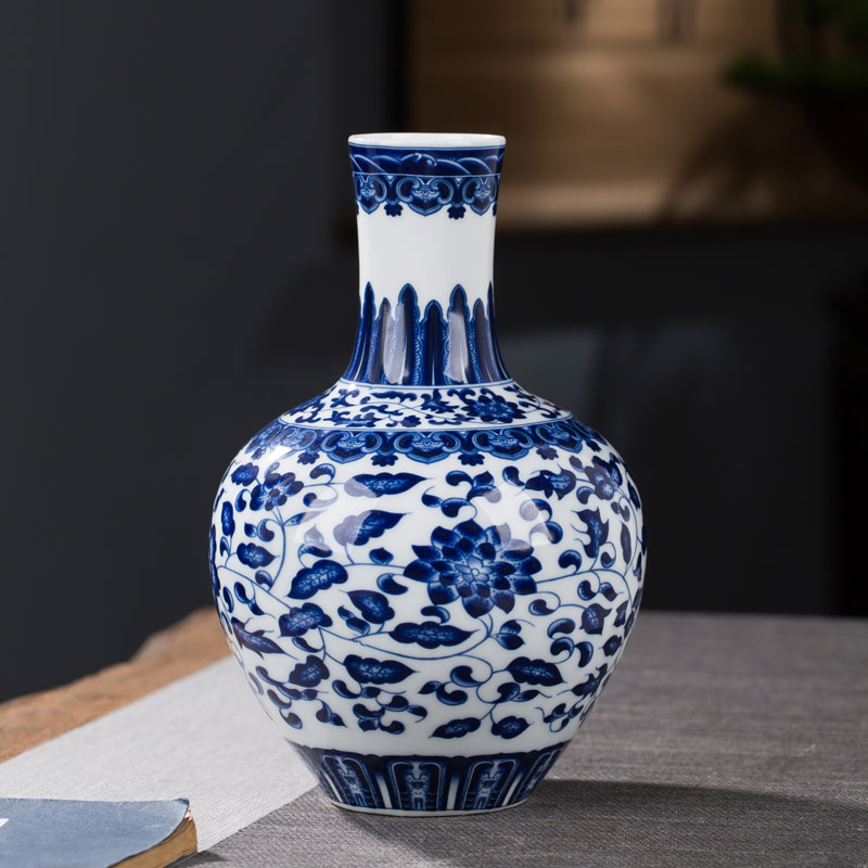 景德镇现代简约陶瓷青花小花瓶家居客厅公司干花插花餐桌装饰品摆