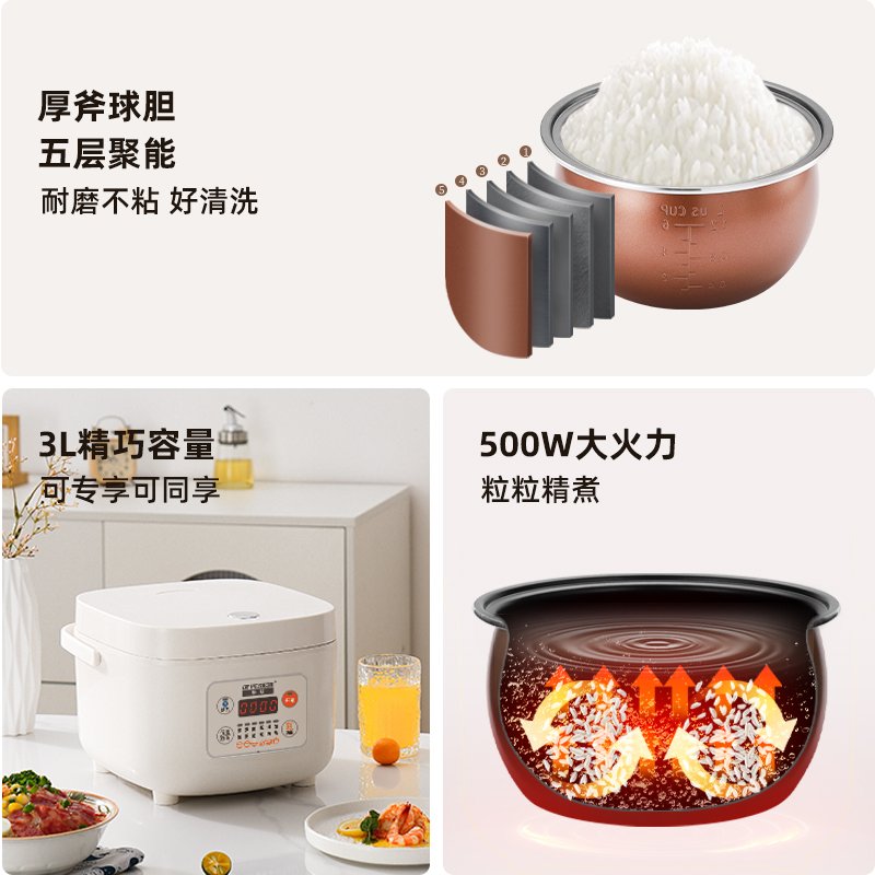 半球新款电饭煲家用2升迷你小型1-3人智能多功能球胆电饭锅微压