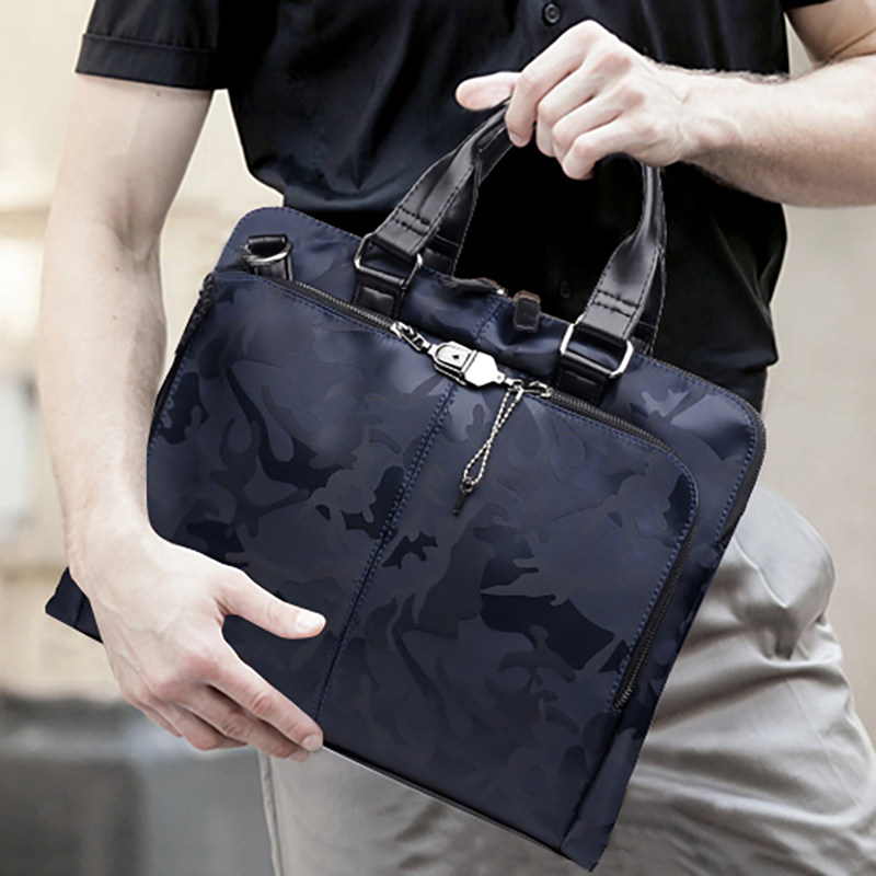 送手包男包男士手提包单肩斜挎包商务帆布牛津布韩版横款公文包潮