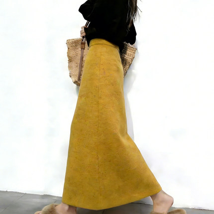 欧货高端定制黄色毛呢大码半身裙女2025冬季新款加厚轻熟风A字裙