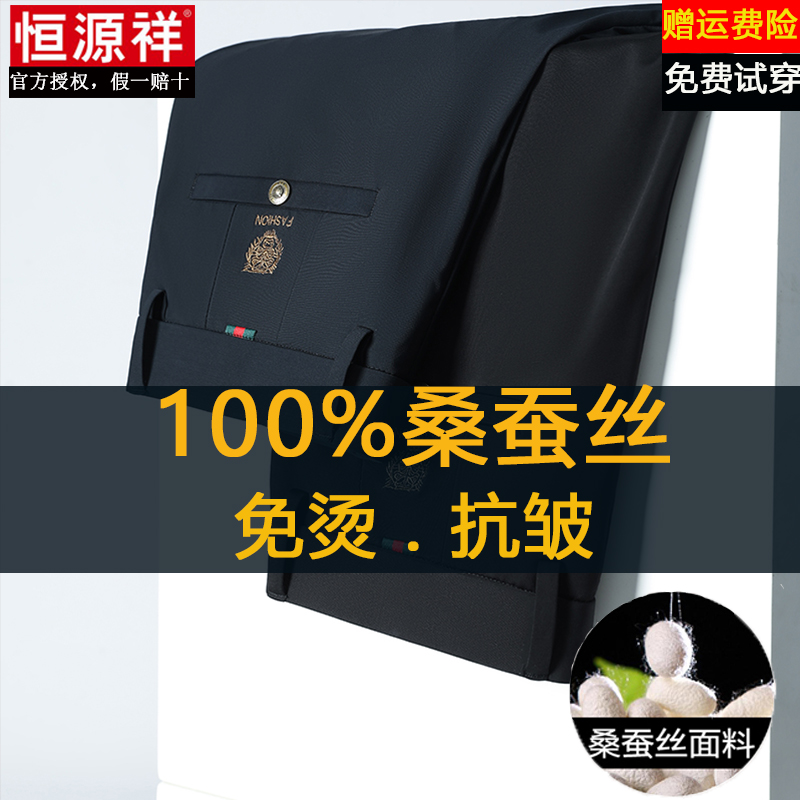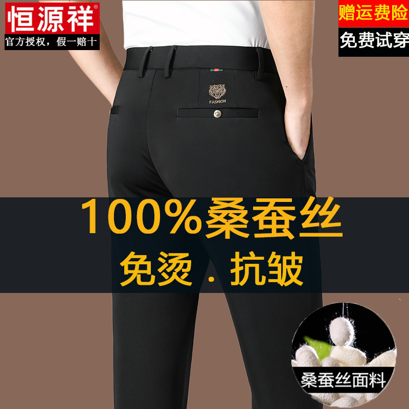 恒源祥高档桑蚕丝夏季男士休闲 西裤中年爸爸装直筒免熨烫商务长