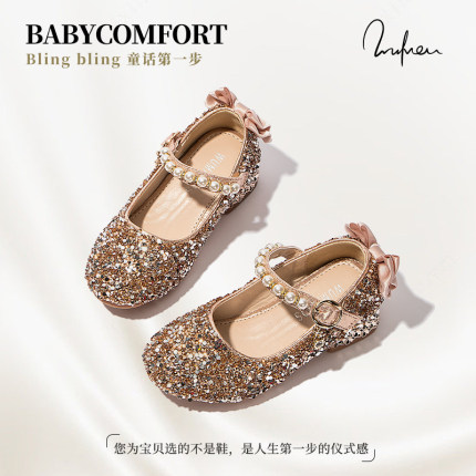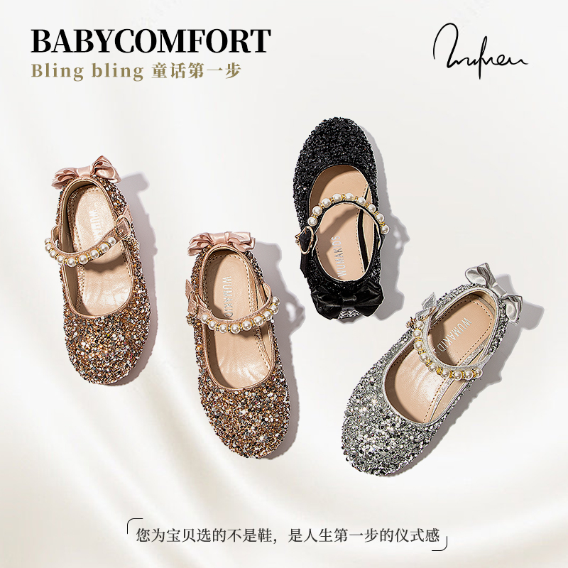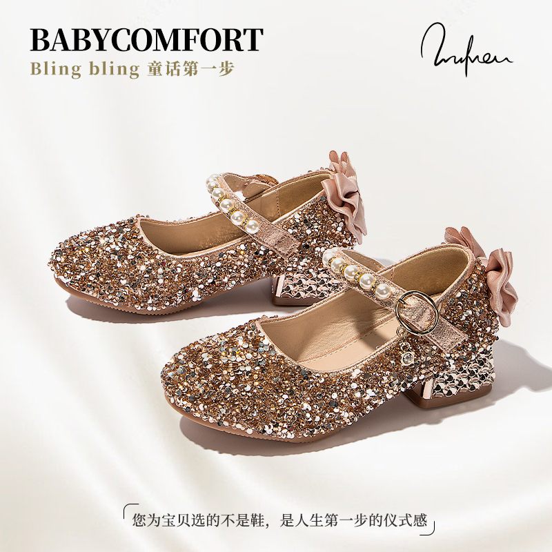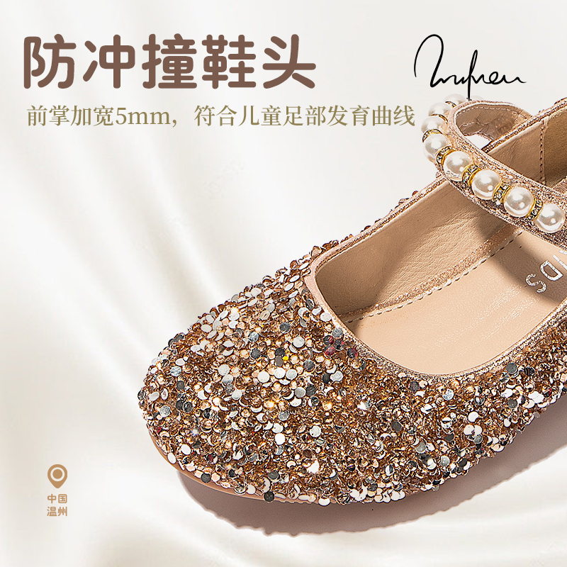 女童水晶鞋小女孩公主鞋2025春秋新款儿童小皮鞋表演鞋洋气高跟鞋