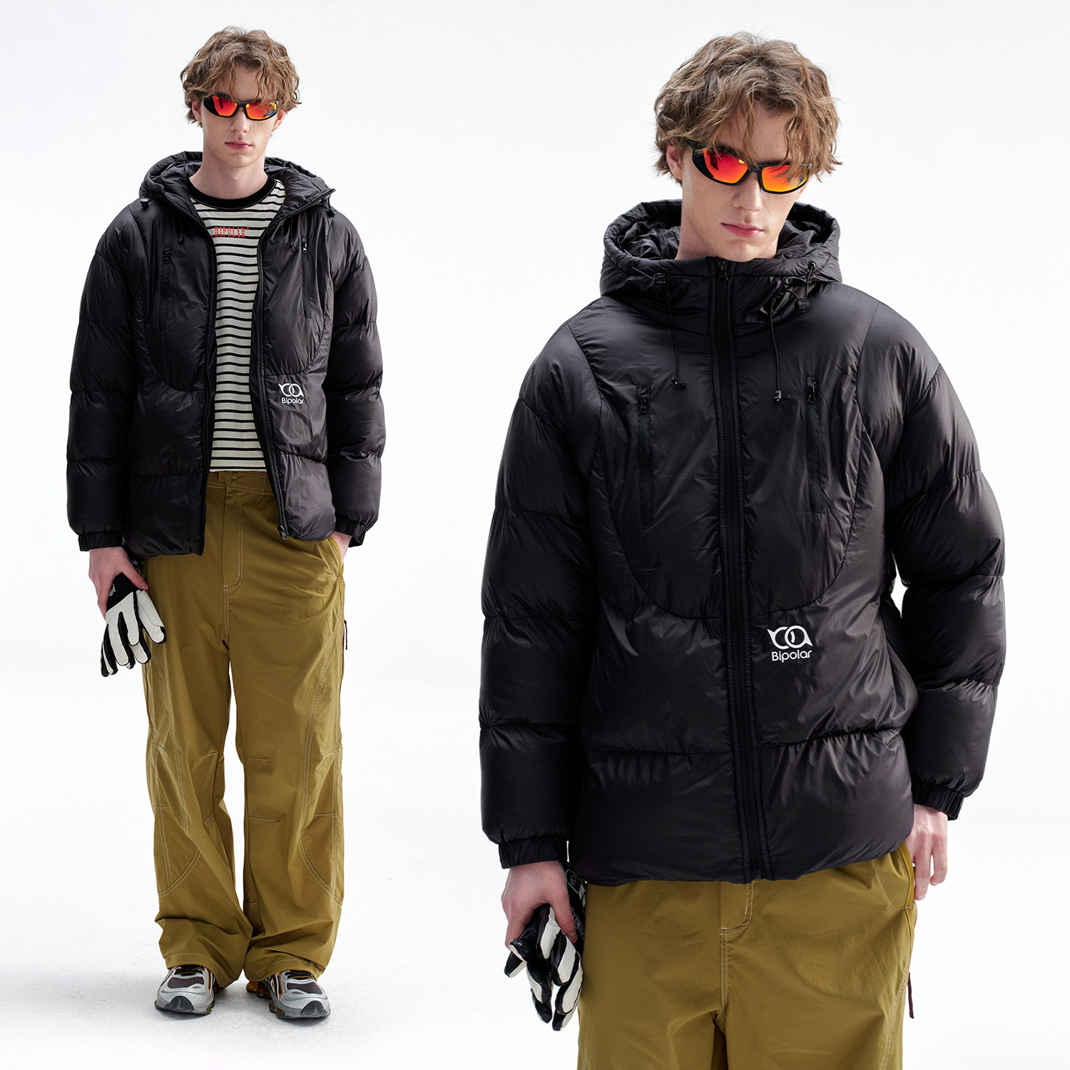 BIPOLAR机能风运动logo解构棉服美式休闲连帽上衣冬季保暖外套男
