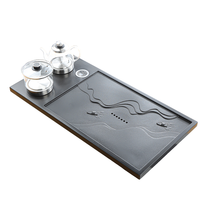 天然浮雕乌金石茶盘茶具套装全自动上水茶台烧水壶一体电磁炉家用
