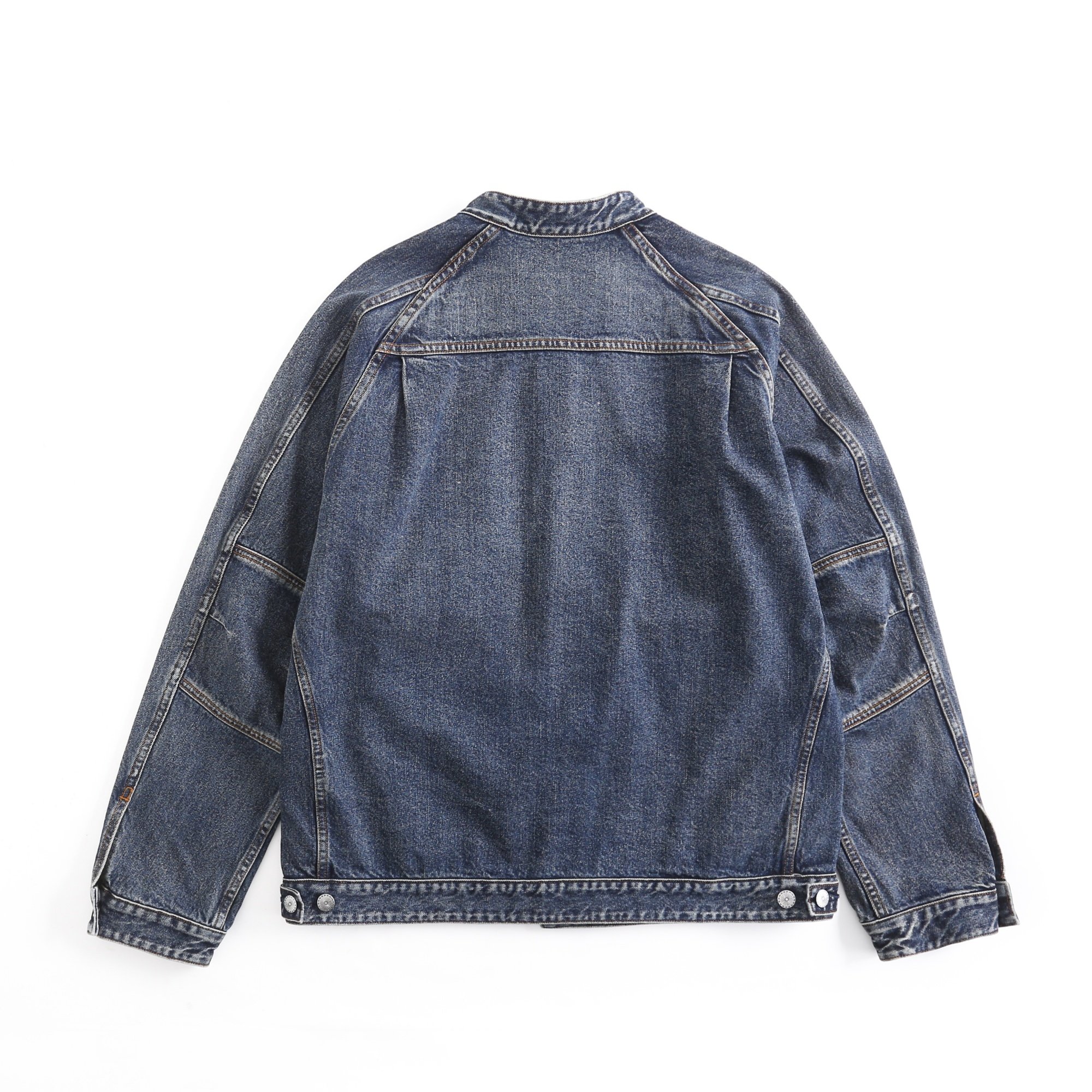 日单复古水洗牛仔衣重磅做旧夹克立领插肩廓形短款外套春秋冬男女