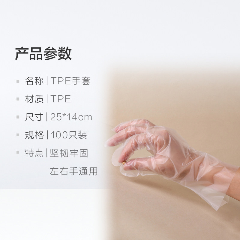 千屿一次性TPE弹性食品级手套厨房卫生家务清洁剥龙虾100只*1盒