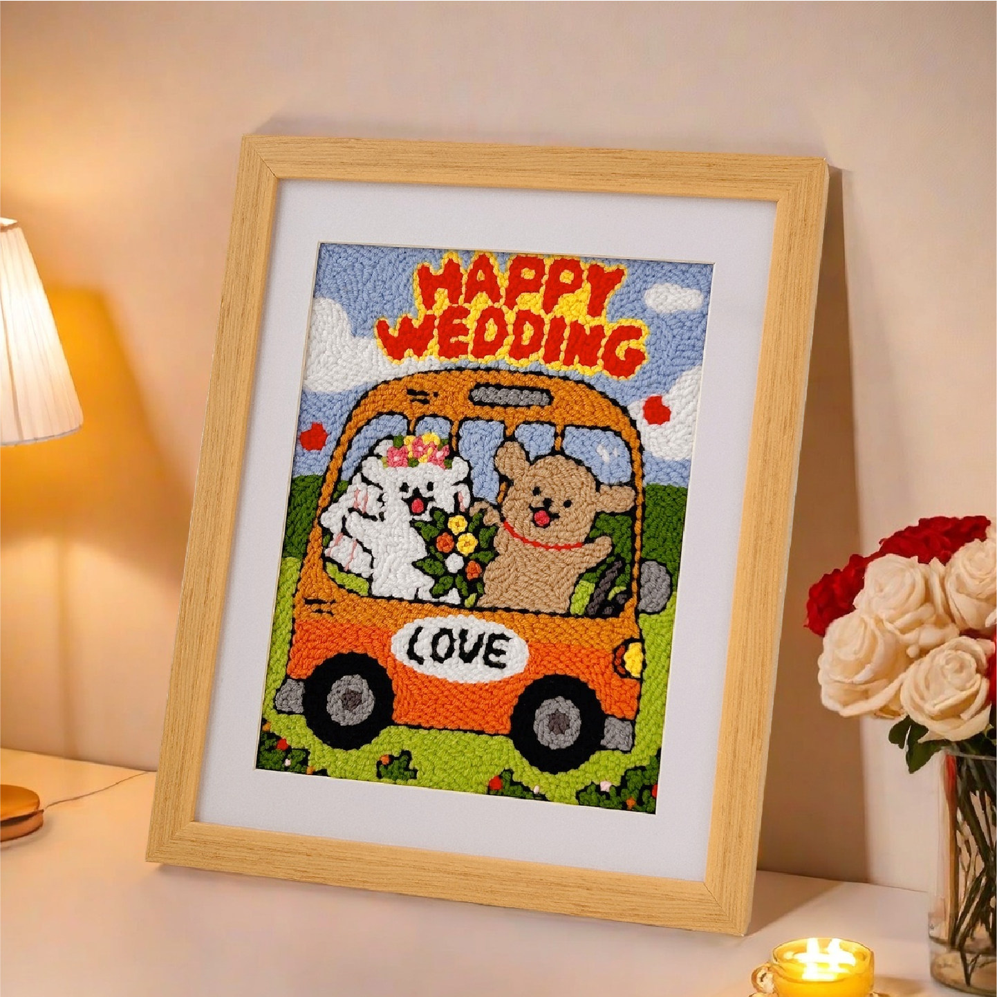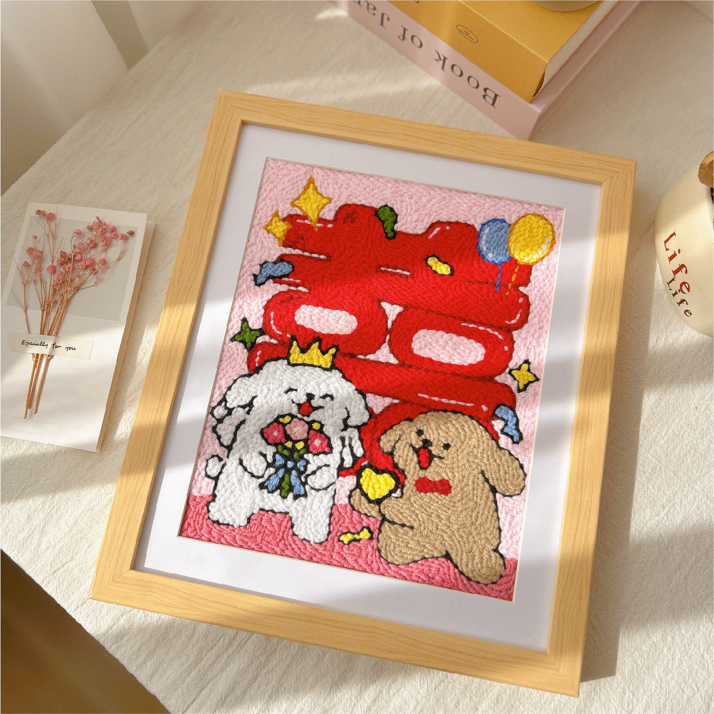 戳戳绣diy结婚新婚礼物材料包卡通小狗毛线画相框送新娘闺蜜摆件