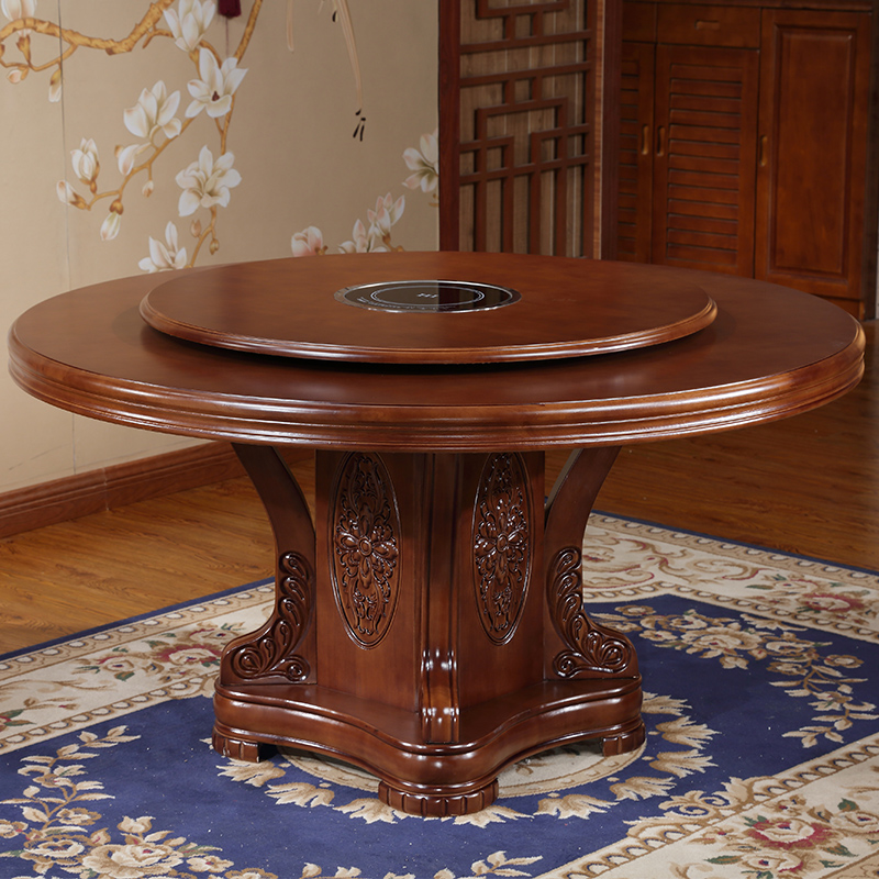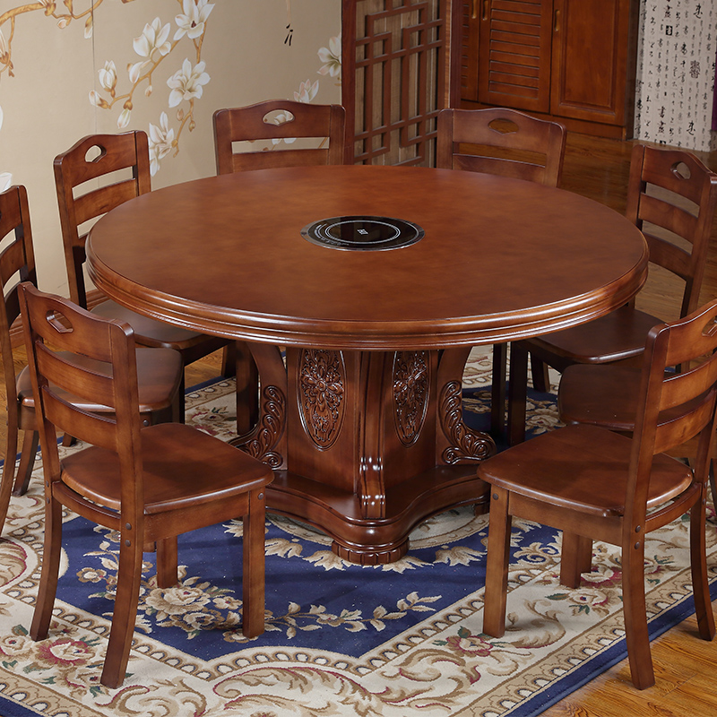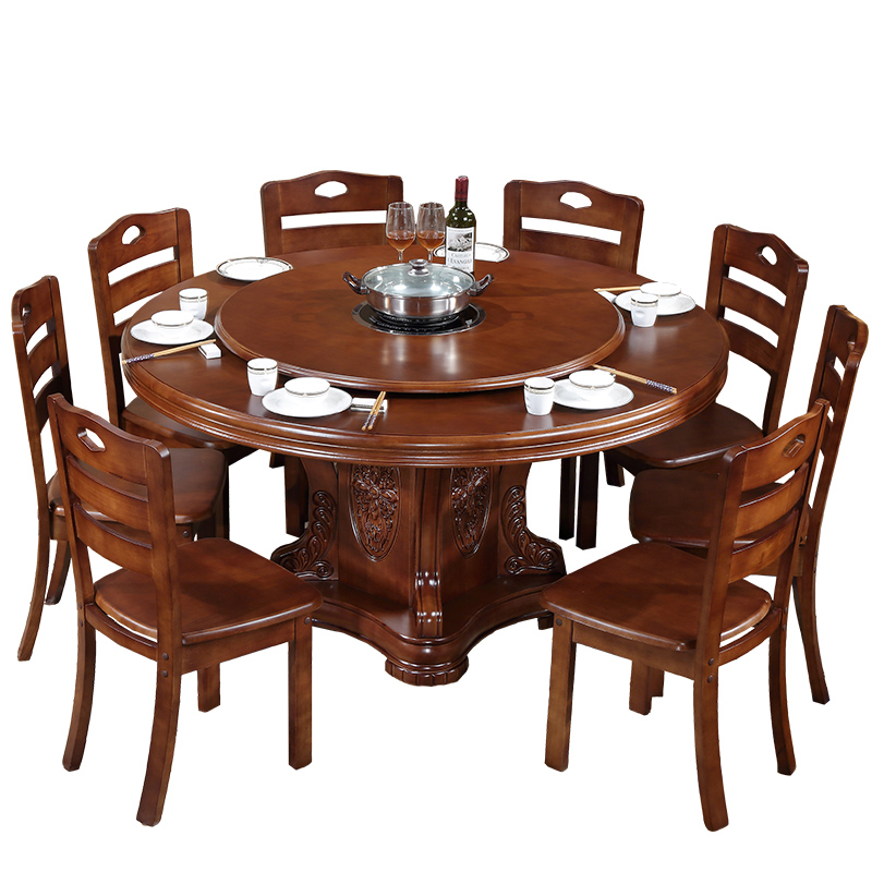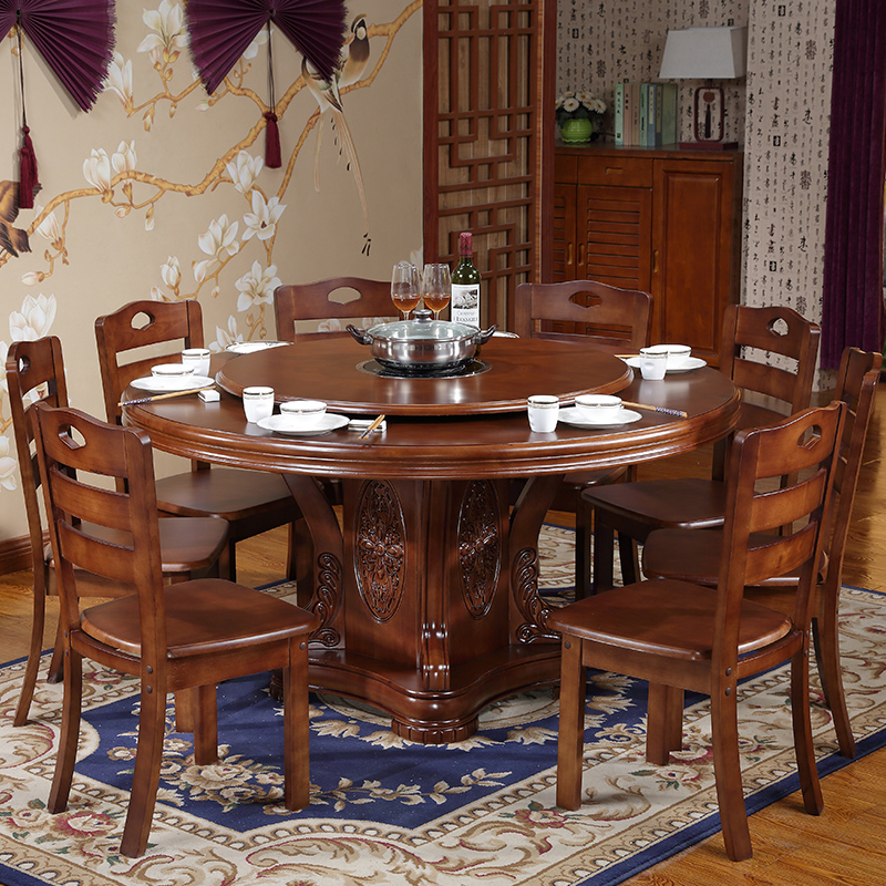 实木餐桌椅组合1.5米1.8米橡木圆形餐台带转盘酒店大圆桌吃饭桌子