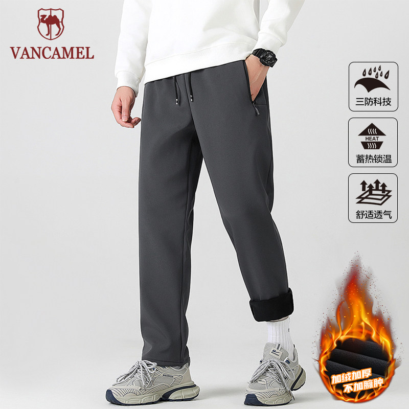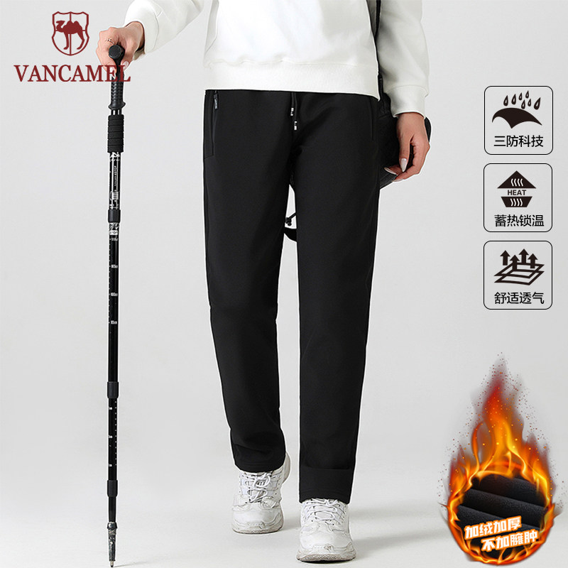 西域骆驼冲锋裤加绒加厚保暖长裤