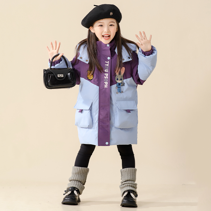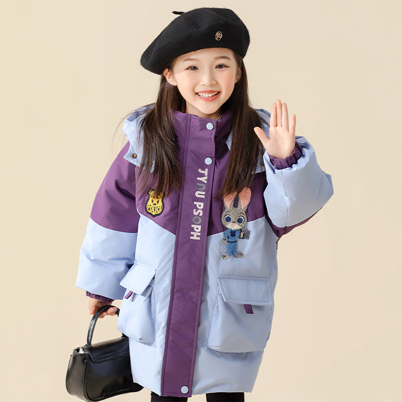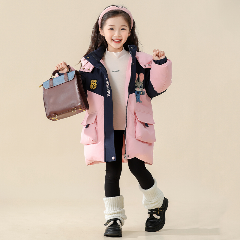 女童羽绒服冬季中长款2025新款兔子警官白鸭绒外套女宝宝保暖冬装