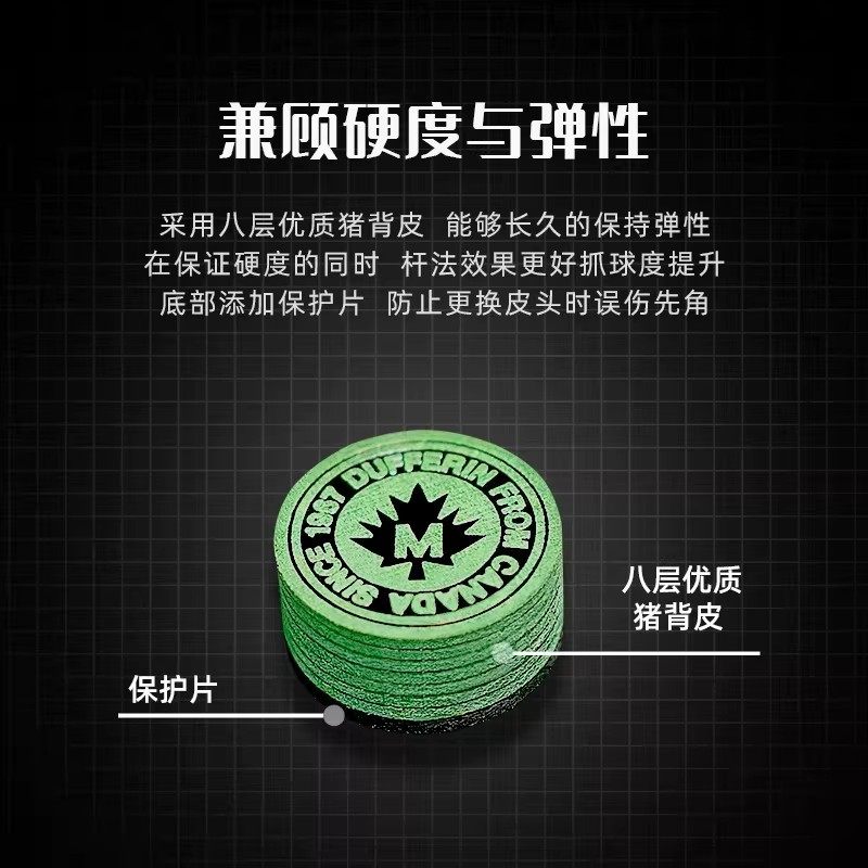 达芬尼Dufferin皮头台球杆皮头大头杆专业多层压制职业皮头韩雨