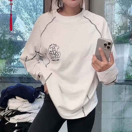 韩版新款ins风秋冬印花黑8插肩T恤长袖百搭打底衫
