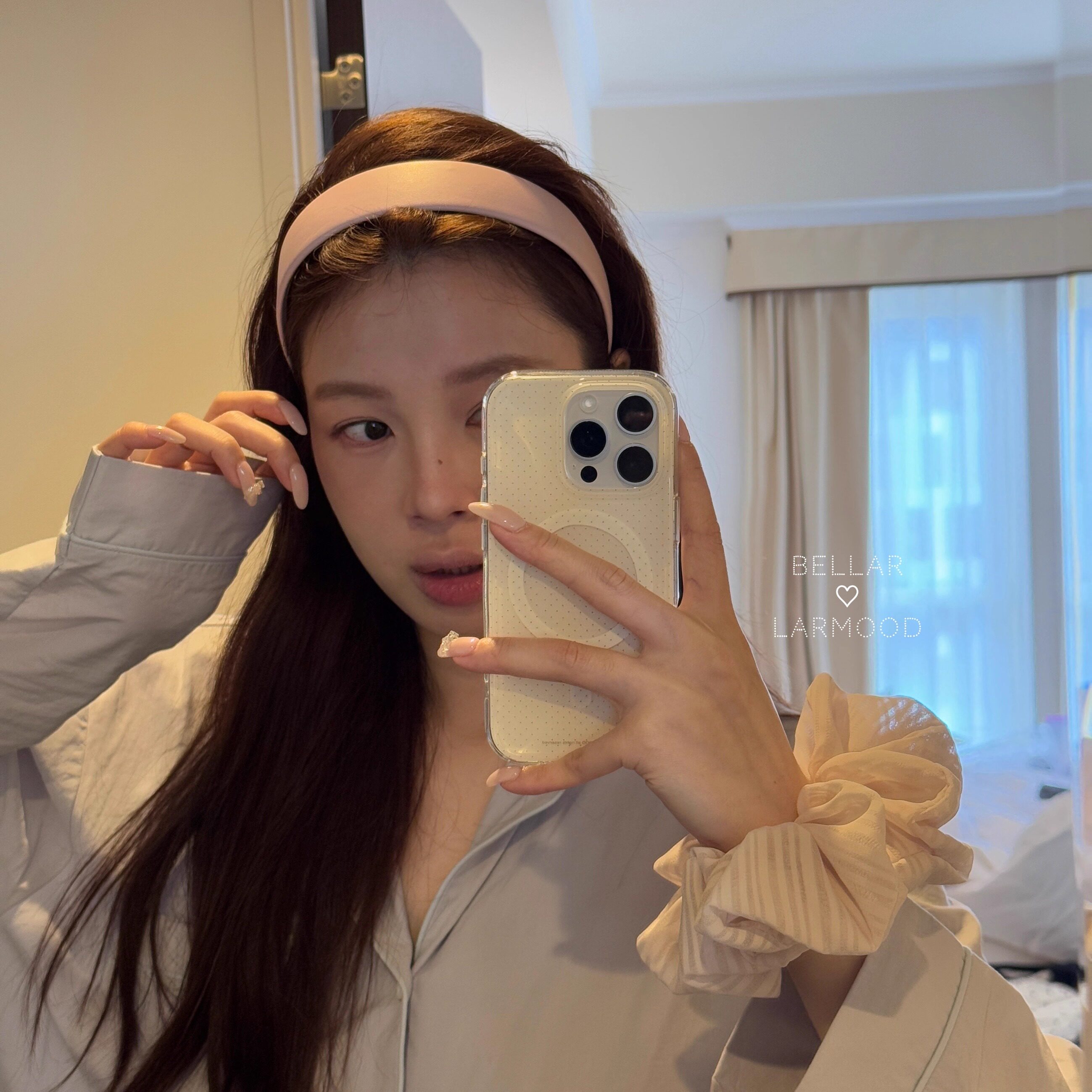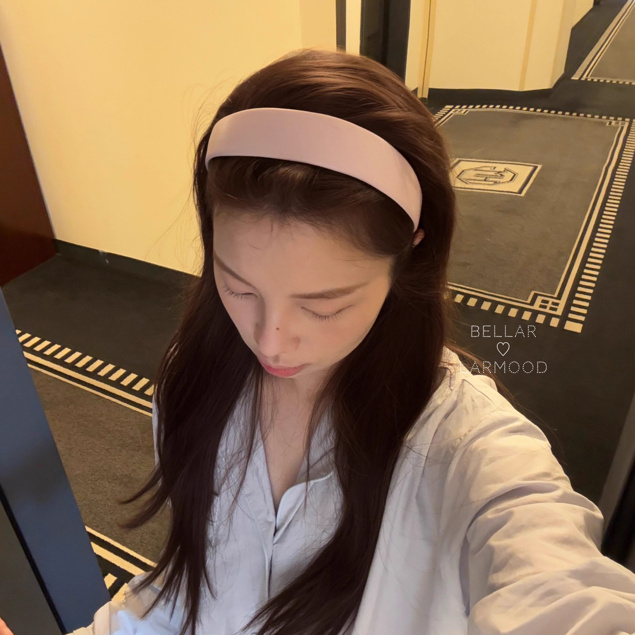 Bellar/larmood pink 淡粉复古白女daily 日常pu皮质爱心圆片发箍