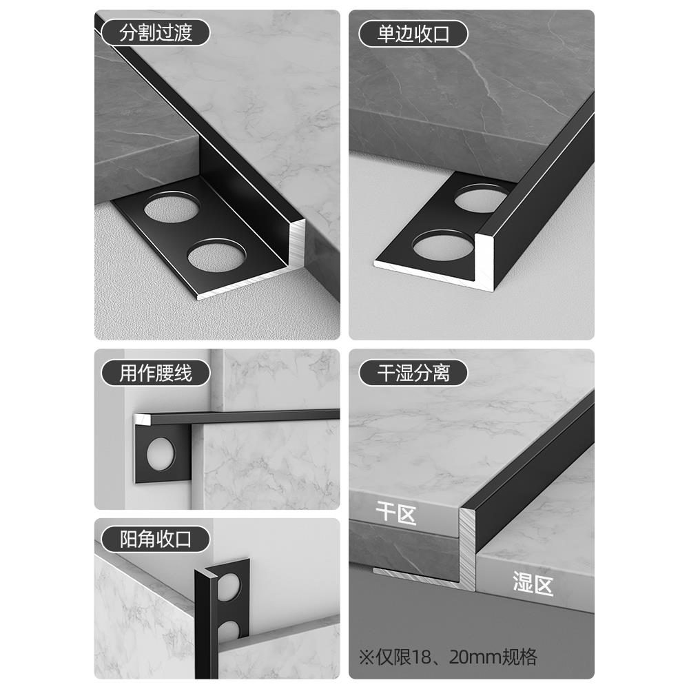 铝合金瓷砖收口条不锈钢收边条压条直角包边卫生间地砖装饰条极窄