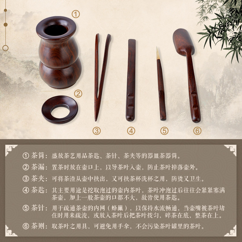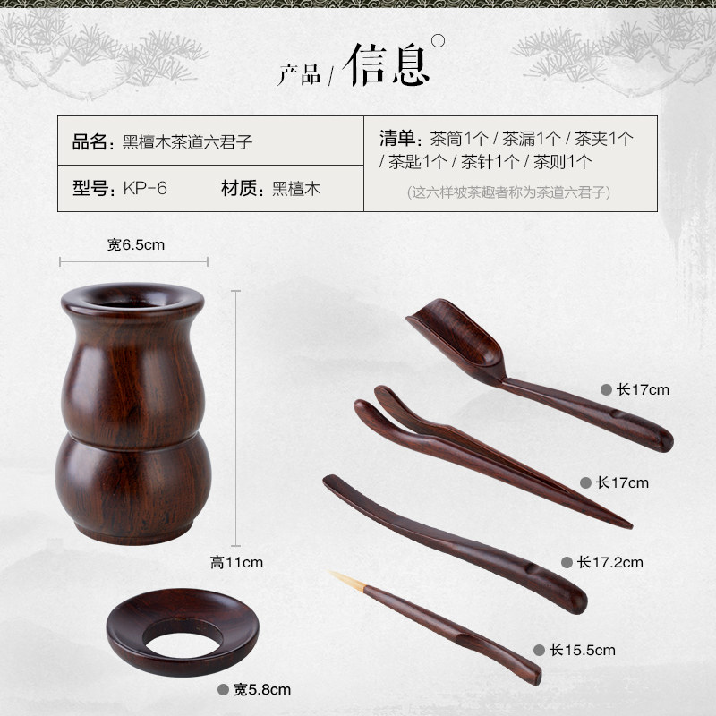 金灶 KP-6 黑檀木茶道六君子套装茶夹杯夹功夫茶具茶道配件摆件