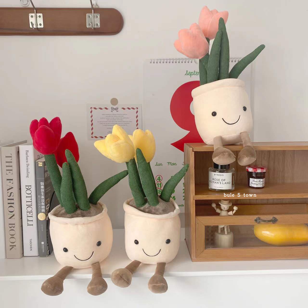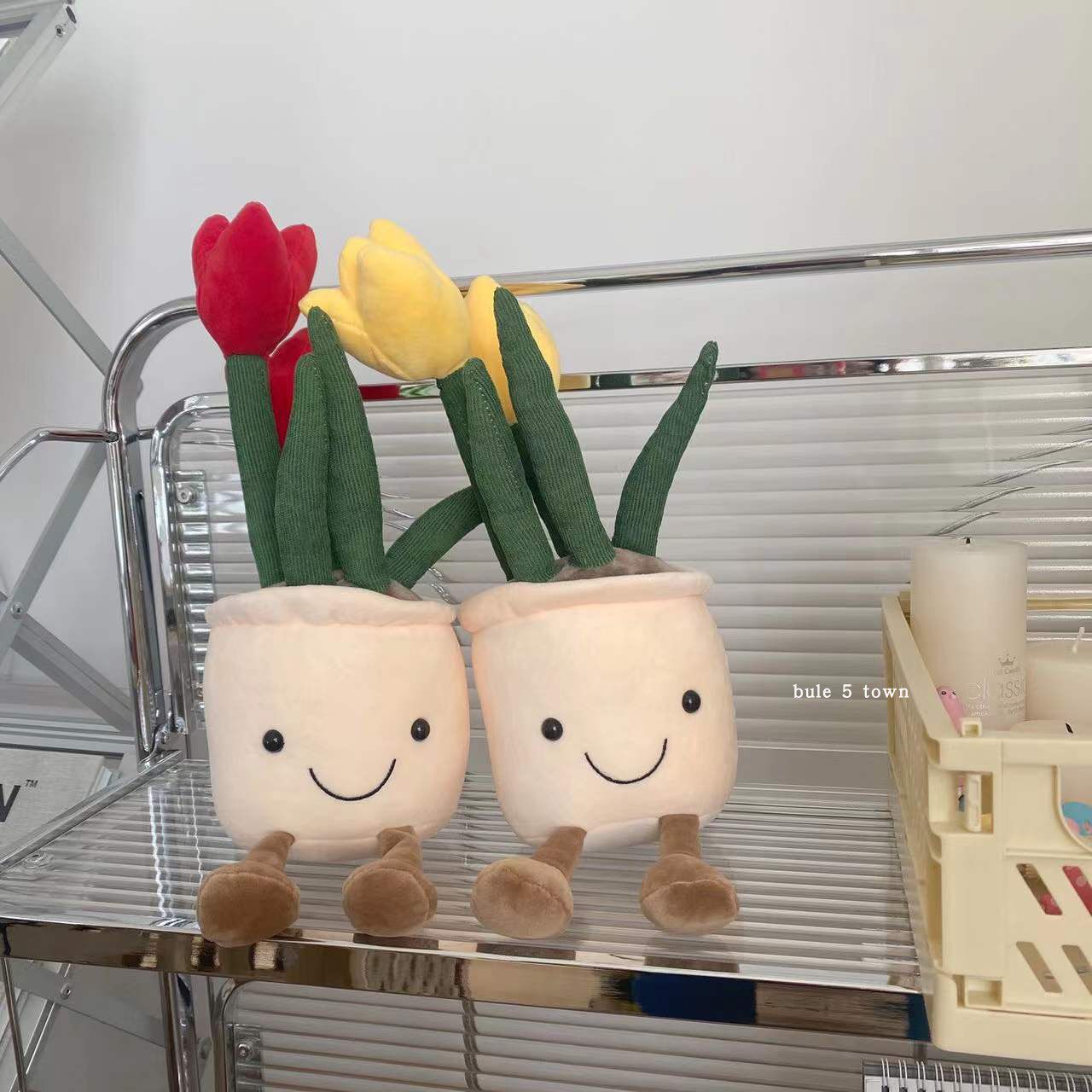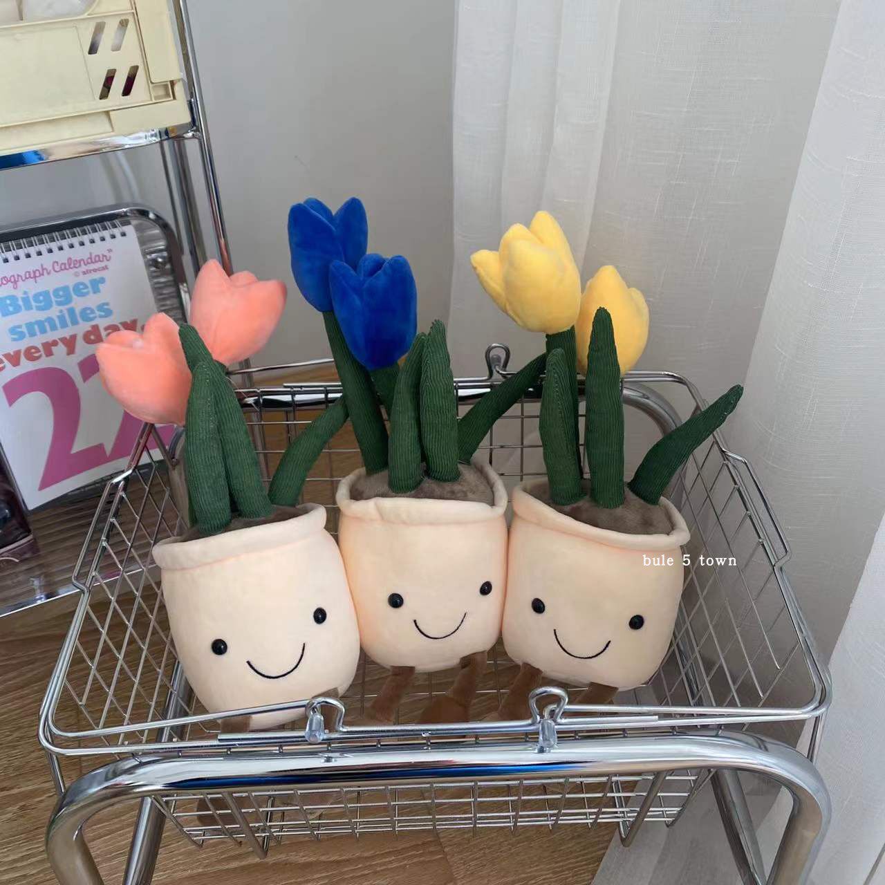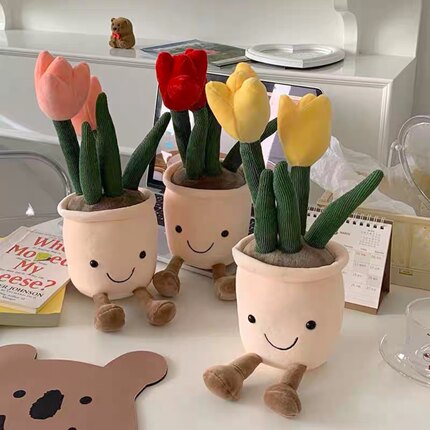 ins风韩国布艺郁金香公仔微笑毛绒盆栽笑脸摆件仿真花朵装饰礼物