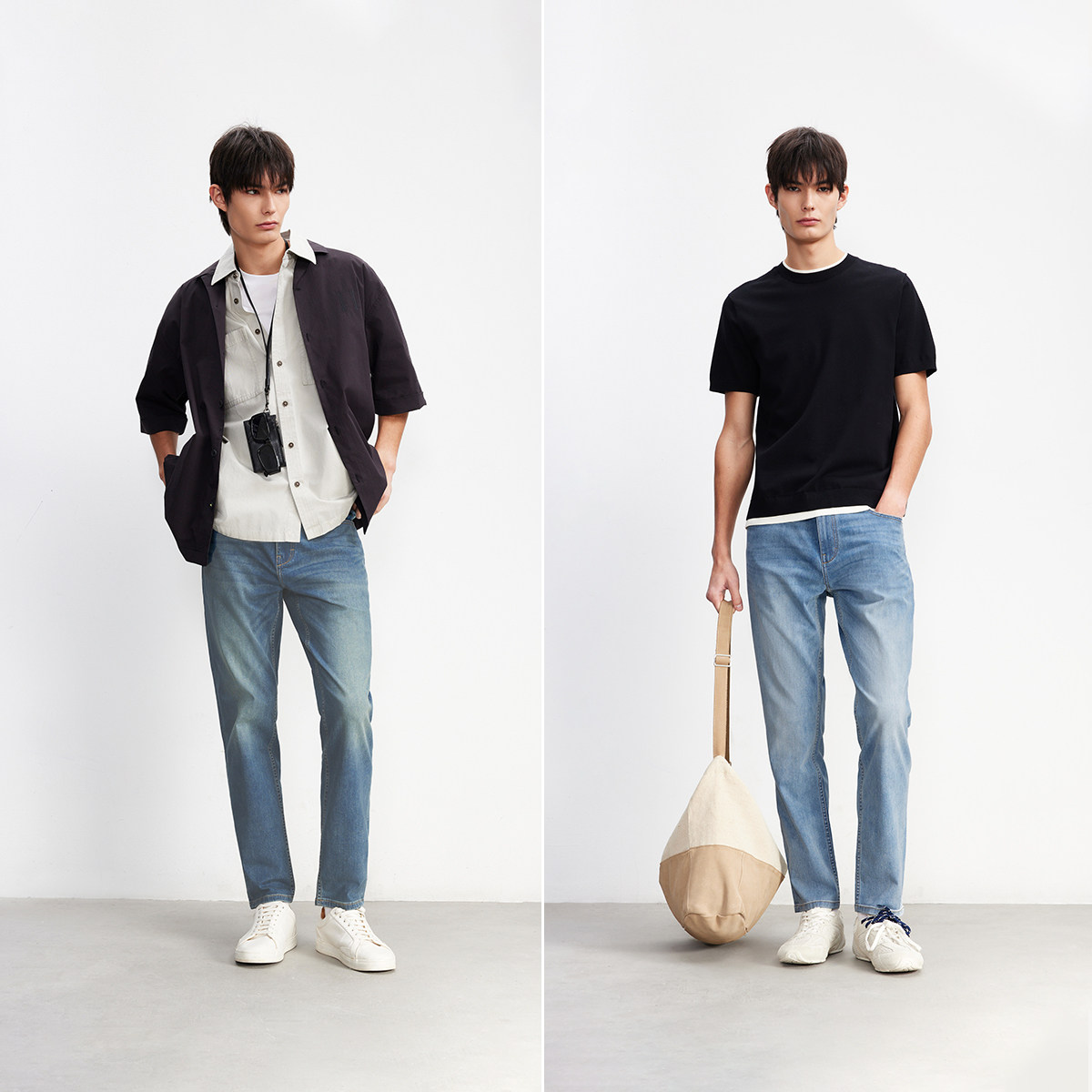 903杰克琼斯春季新款男装猫须水洗复古直筒九分牛仔裤男款长裤子