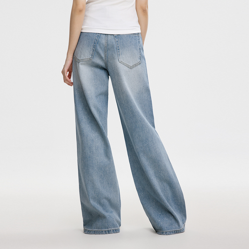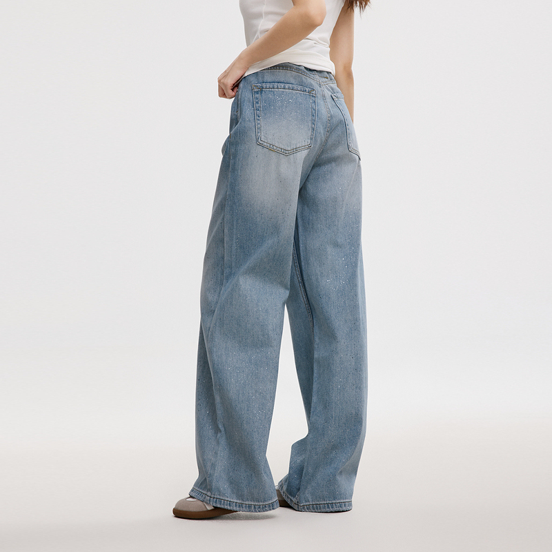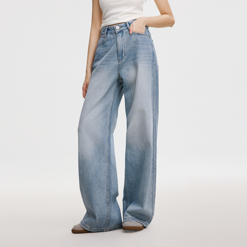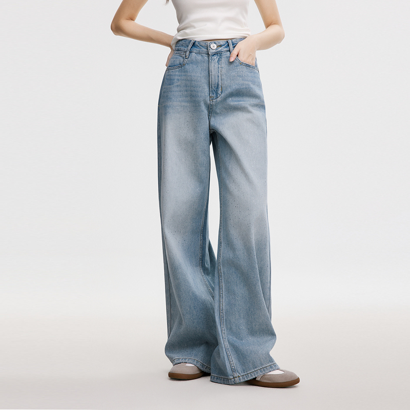 记忆的起点牛仔阔腿裤高腰百搭加长直筒裤2025夏季新款69TX28555