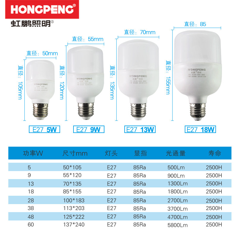 led灯泡节能球泡灯5瓦超亮家用球形柱形暖白e27螺口黄光18W4000k