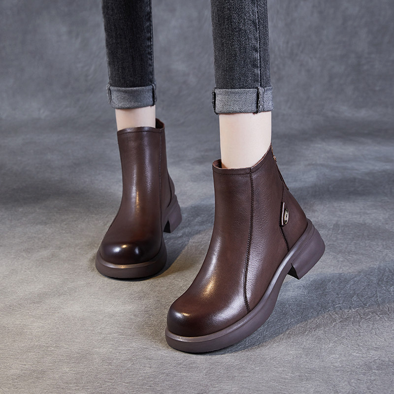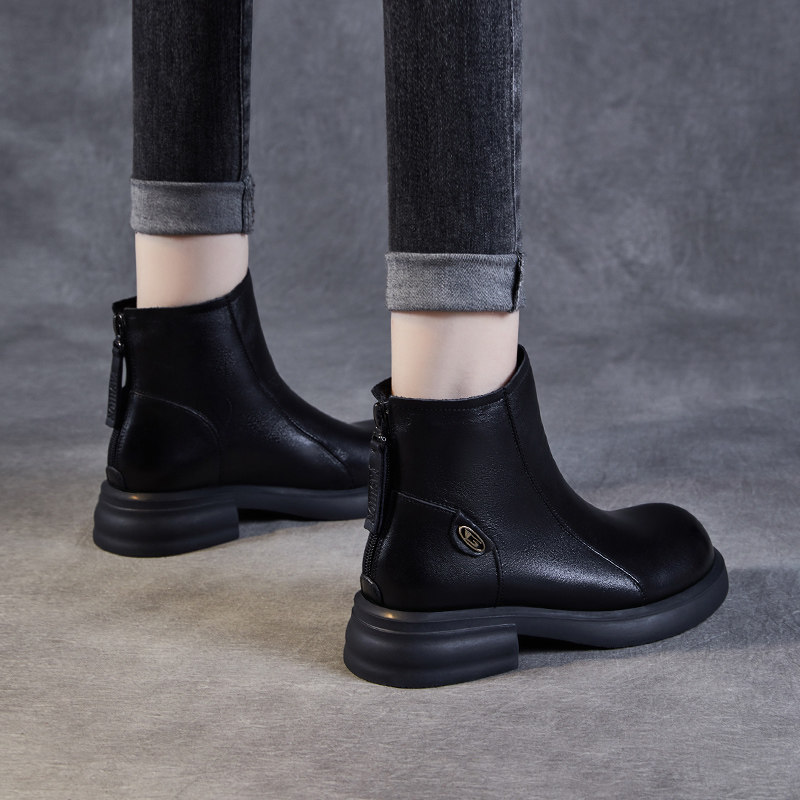 头层牛皮马丁靴女英伦风2025年秋冬季切尔西靴平底真皮后拉链短靴