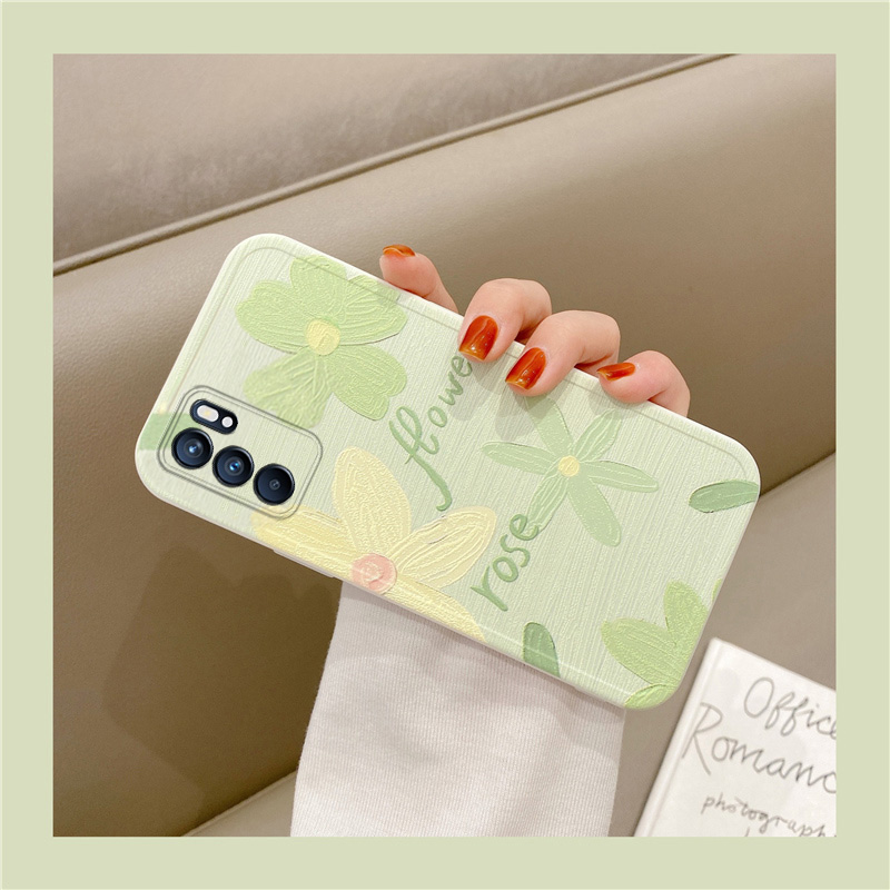 适用于OPPO Reno6油画花ins风手机壳女防摔reno6硅胶套绿色保护套