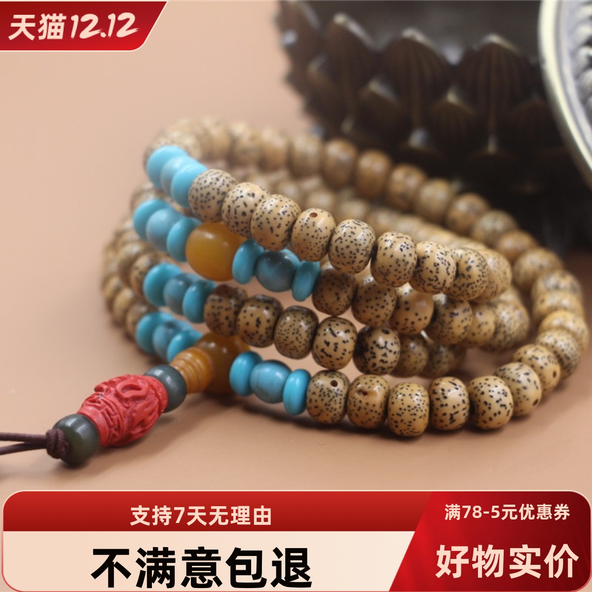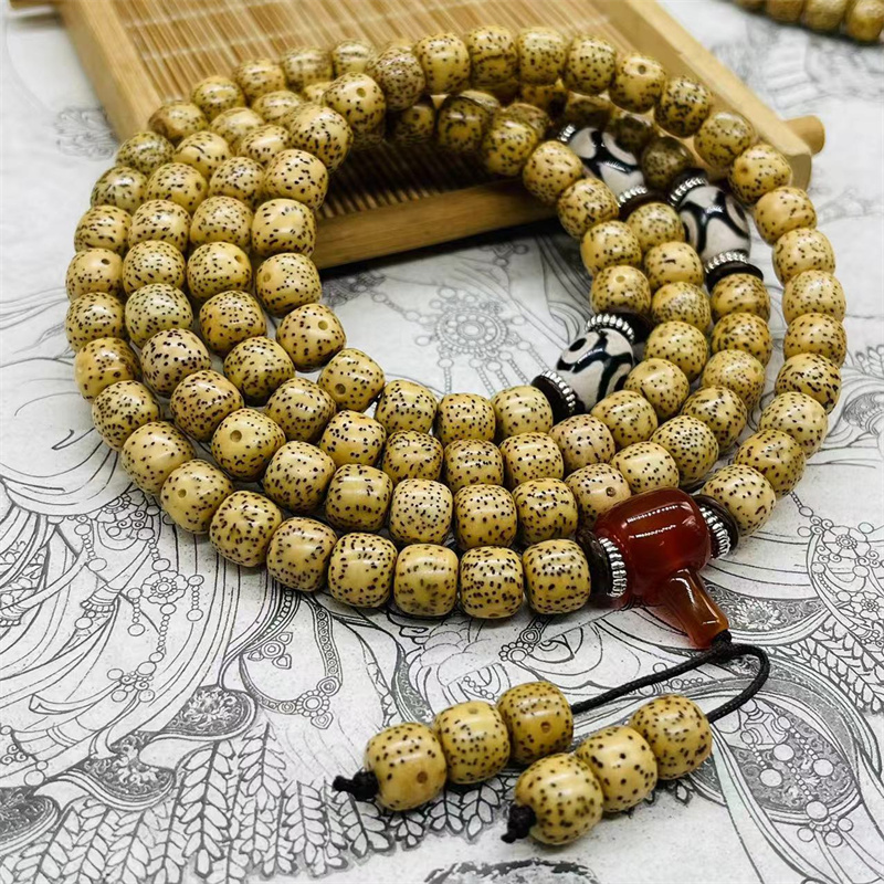 陈籽老料星月菩提籽佛珠手串手链项链108颗9*7mm带配饰成品男女款