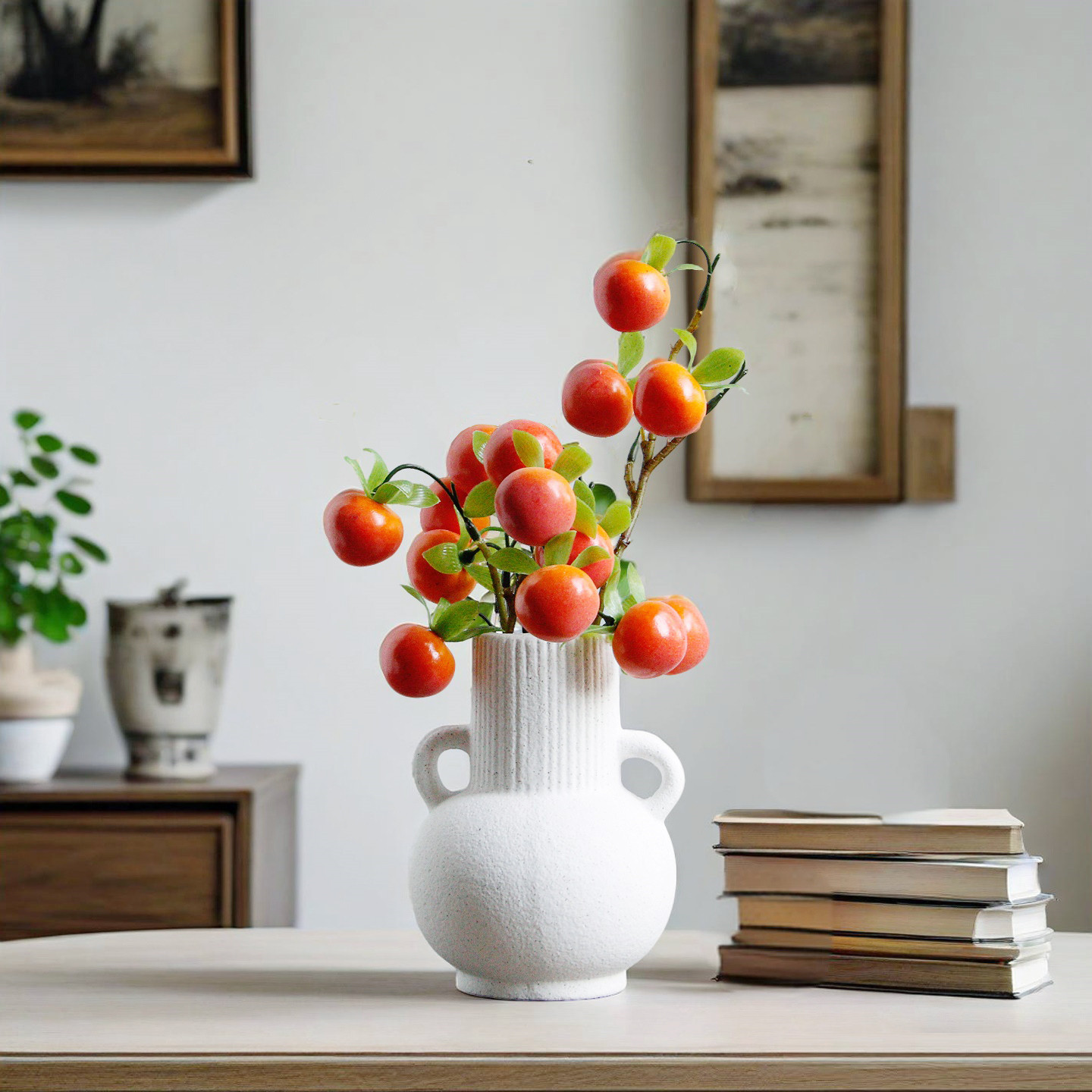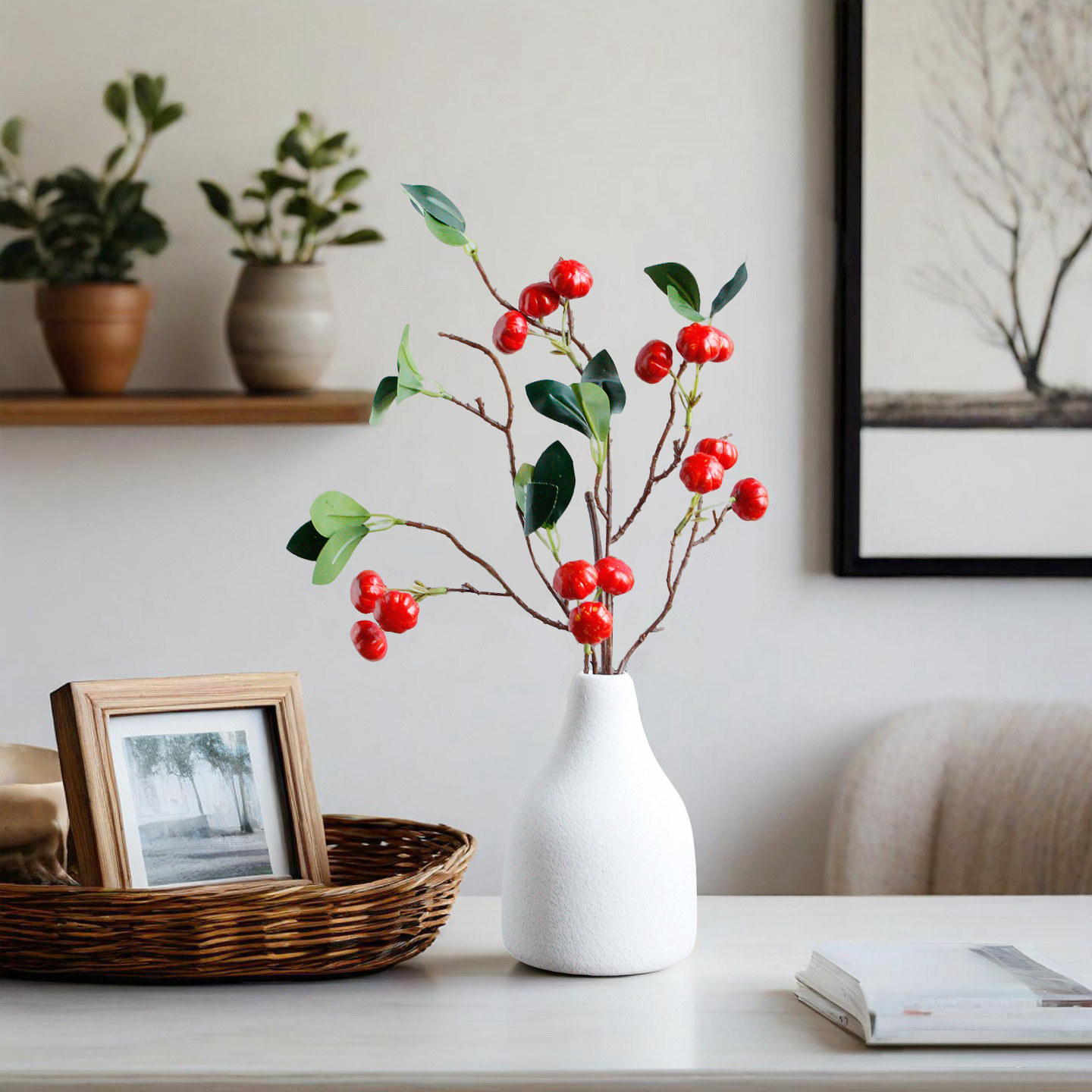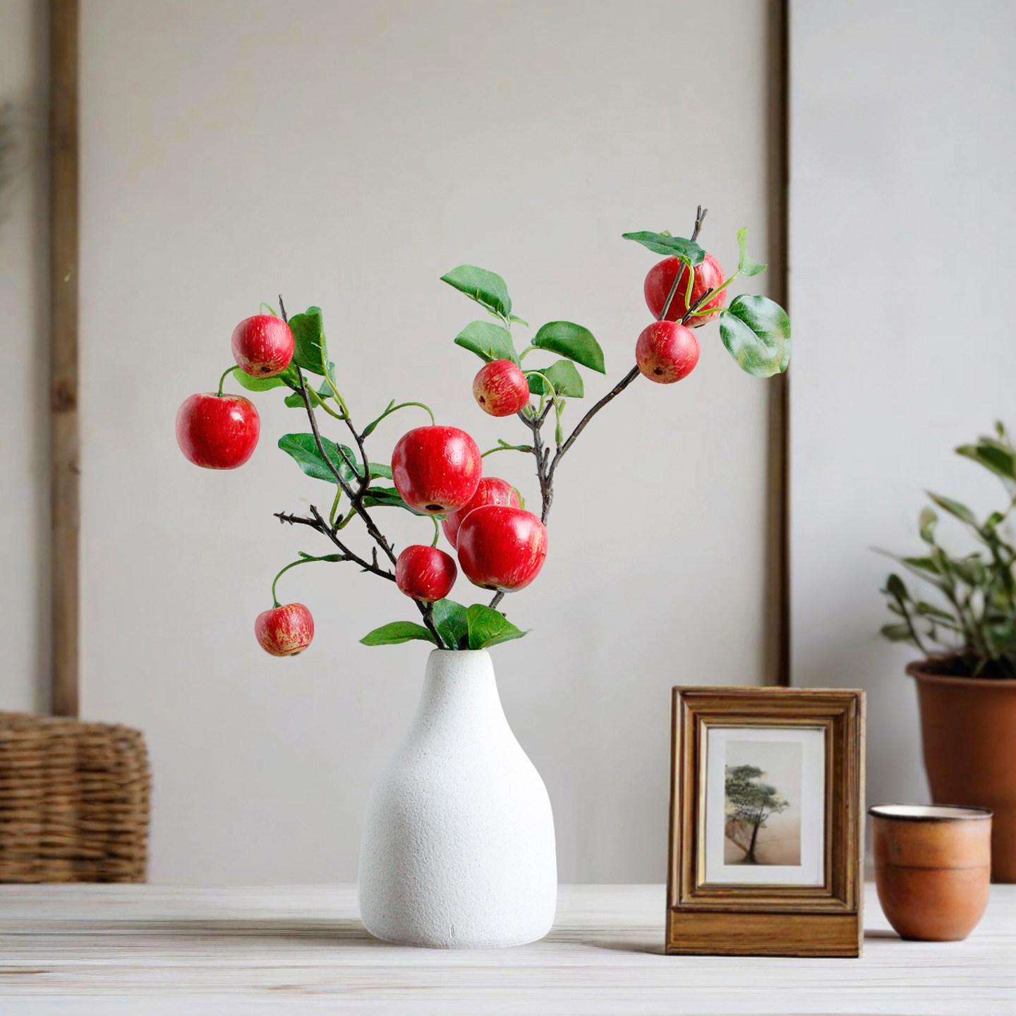 仿真苹果石榴树枝果实摆件客厅玄关假花高级感逼真绿植家居装饰品