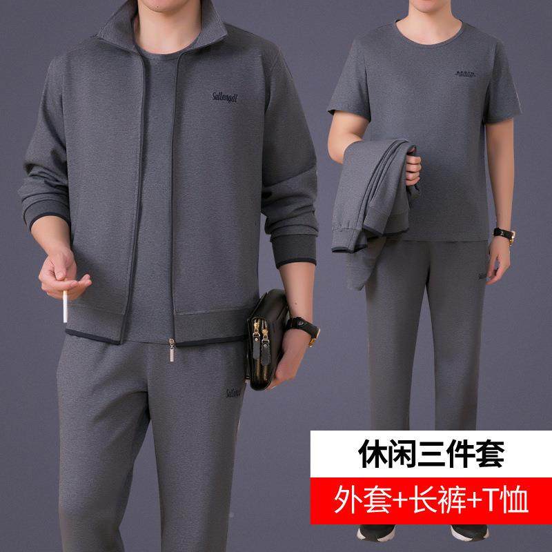 男士运56341481套装春秋三件动套中爸老年练大码运动装爸晨运动服
