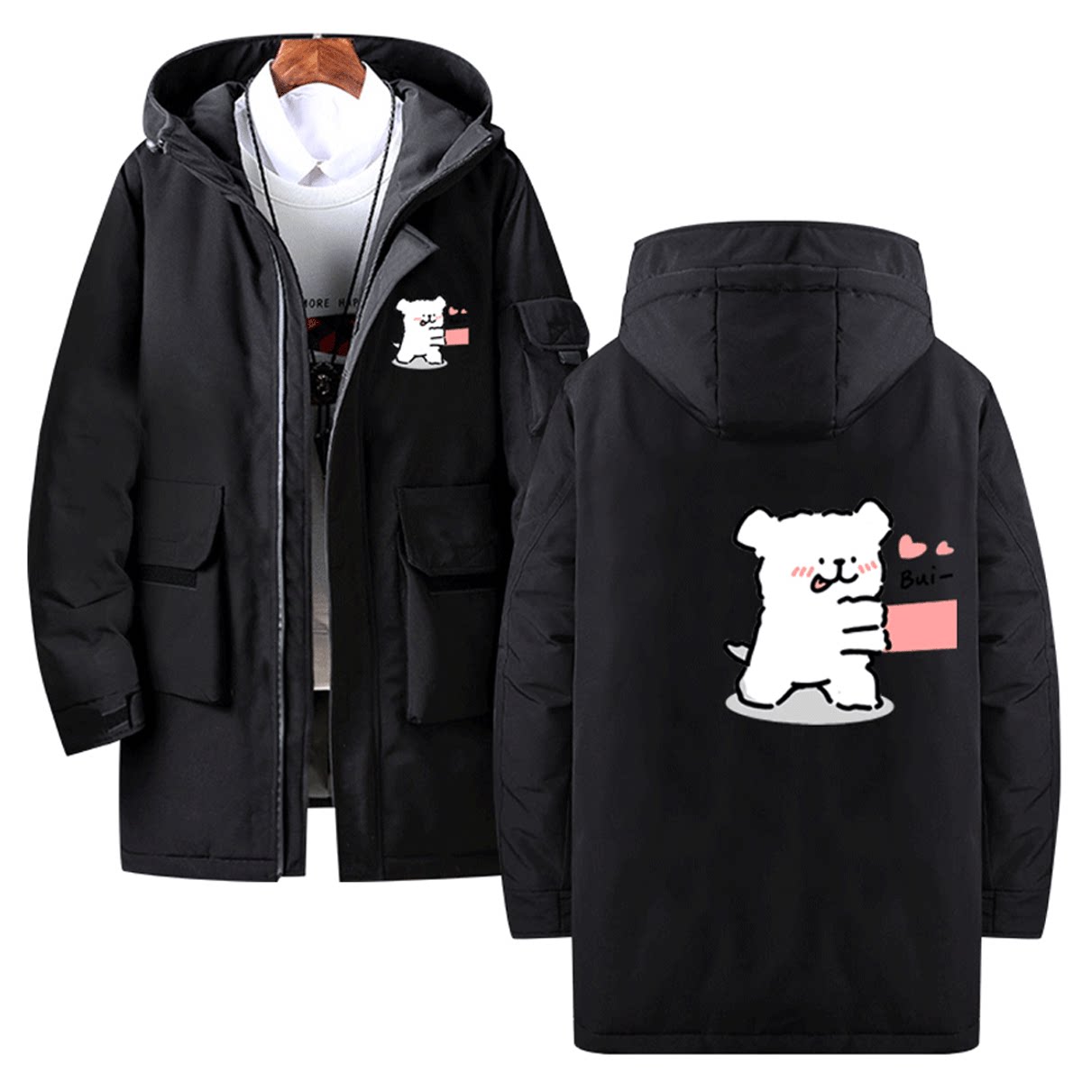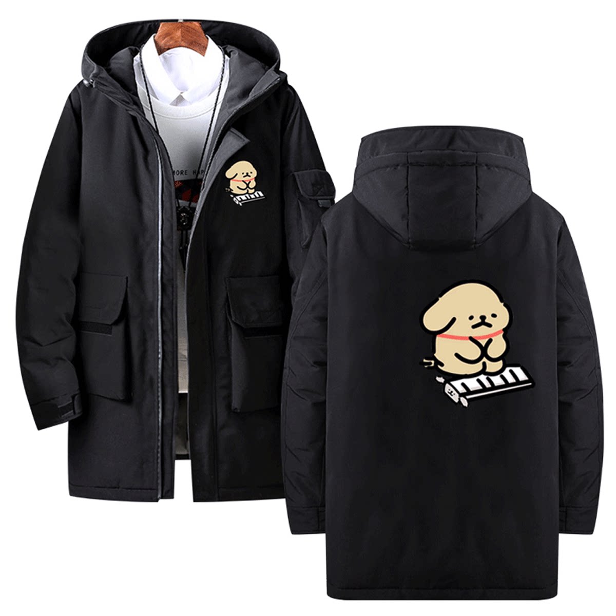 线条小狗卡通可爱男女情侣款秋冬休闲连帽可定制外套上衣潮羽绒服