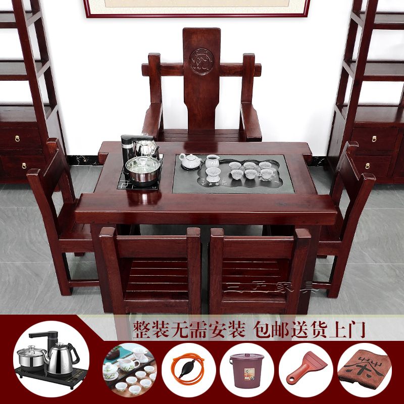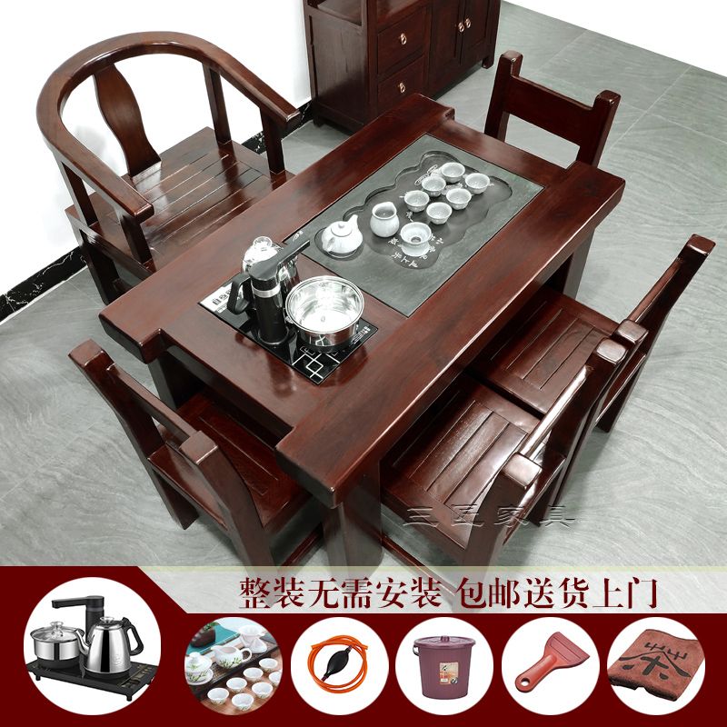 老船木茶桌椅组合小型阳台家用实木功夫茶台套装现代简约泡茶桌