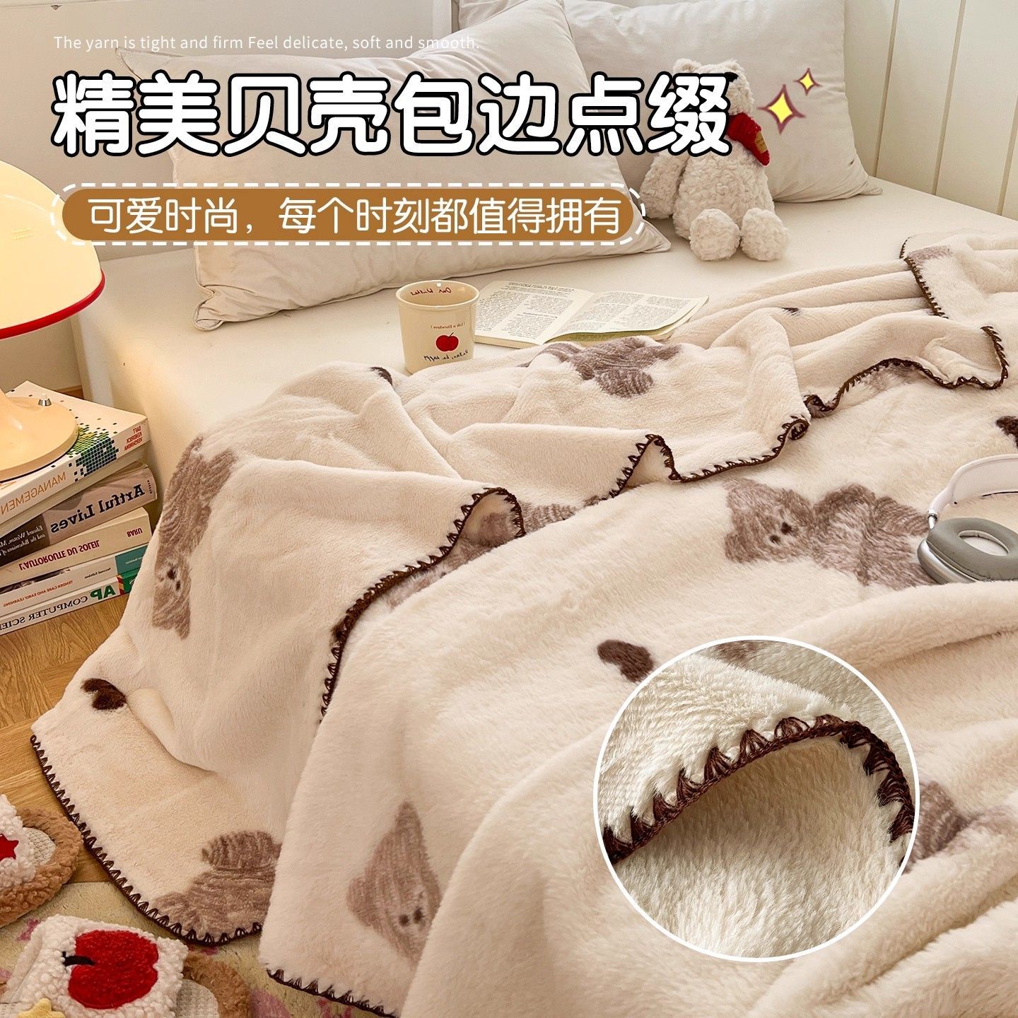 卡通牛奶绒贝壳边毛毯珊瑚绒学生宿舍毛巾被沙发毯子午睡毯办公室