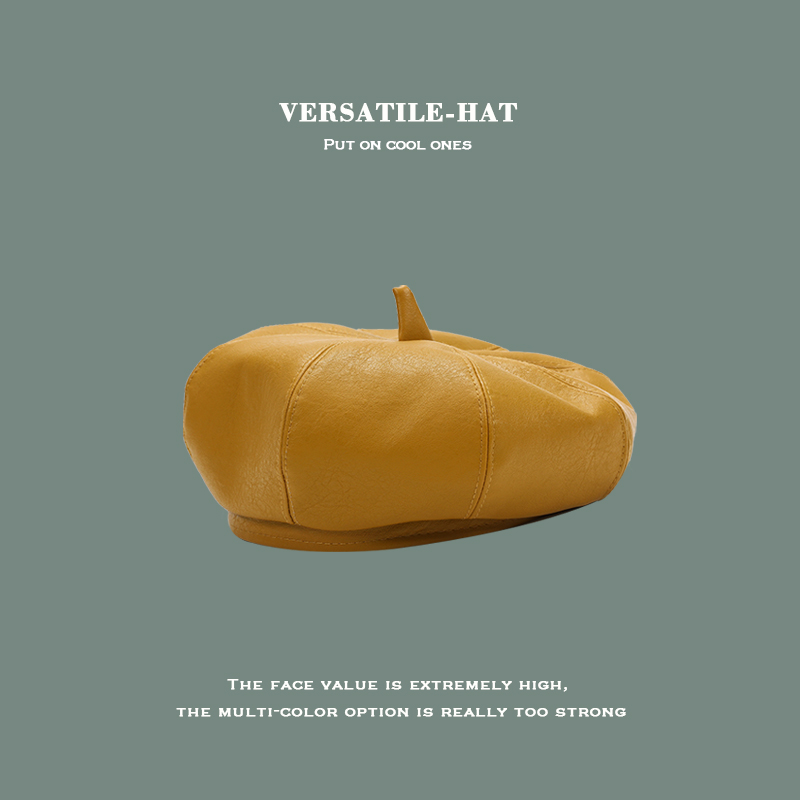 女复古pu皮质八角帽南瓜帽贝雷帽
