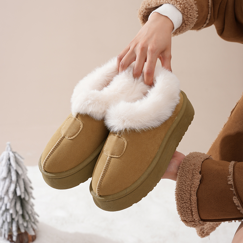保暖毛毛雪地靴加绒加厚短筒棉鞋