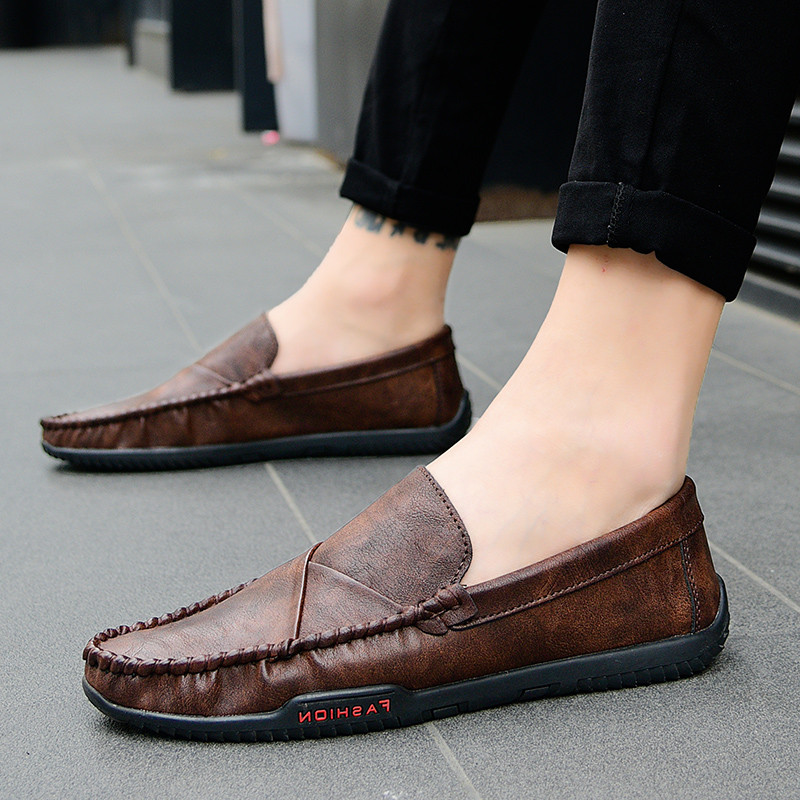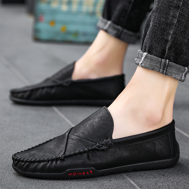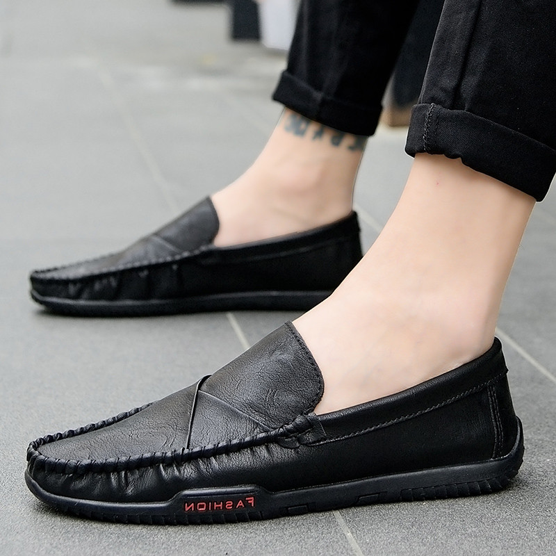 春季豆豆鞋男潮2021新款潮流韩版百搭夏款一脚蹬英伦懒人休闲皮鞋