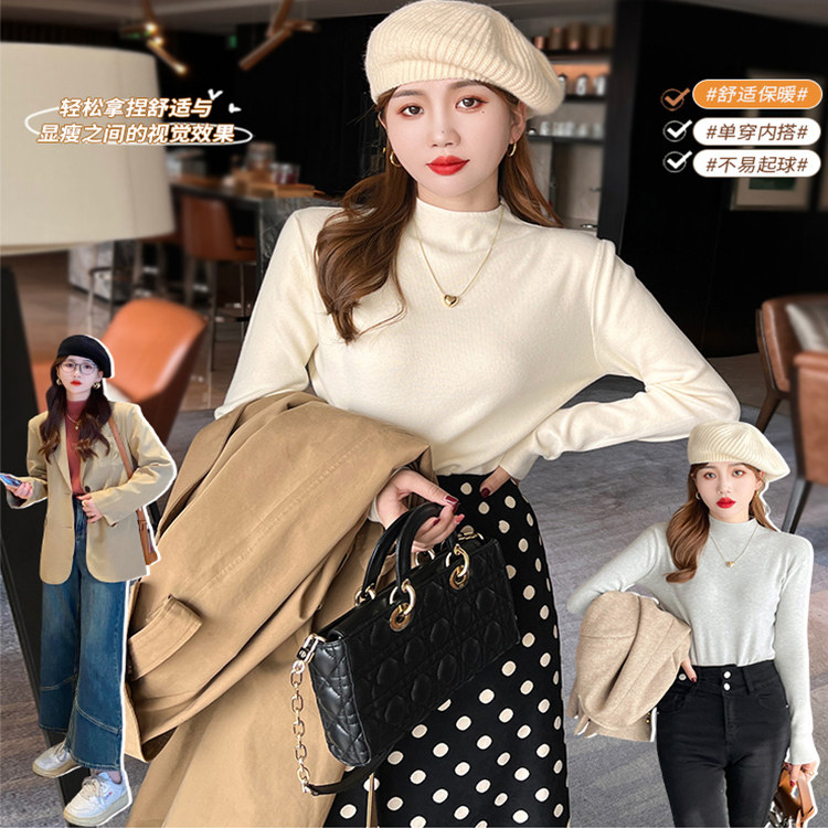 打底毛衣女内搭高级感秋冬季2025年新款爆款半高领针织衫灰色上衣