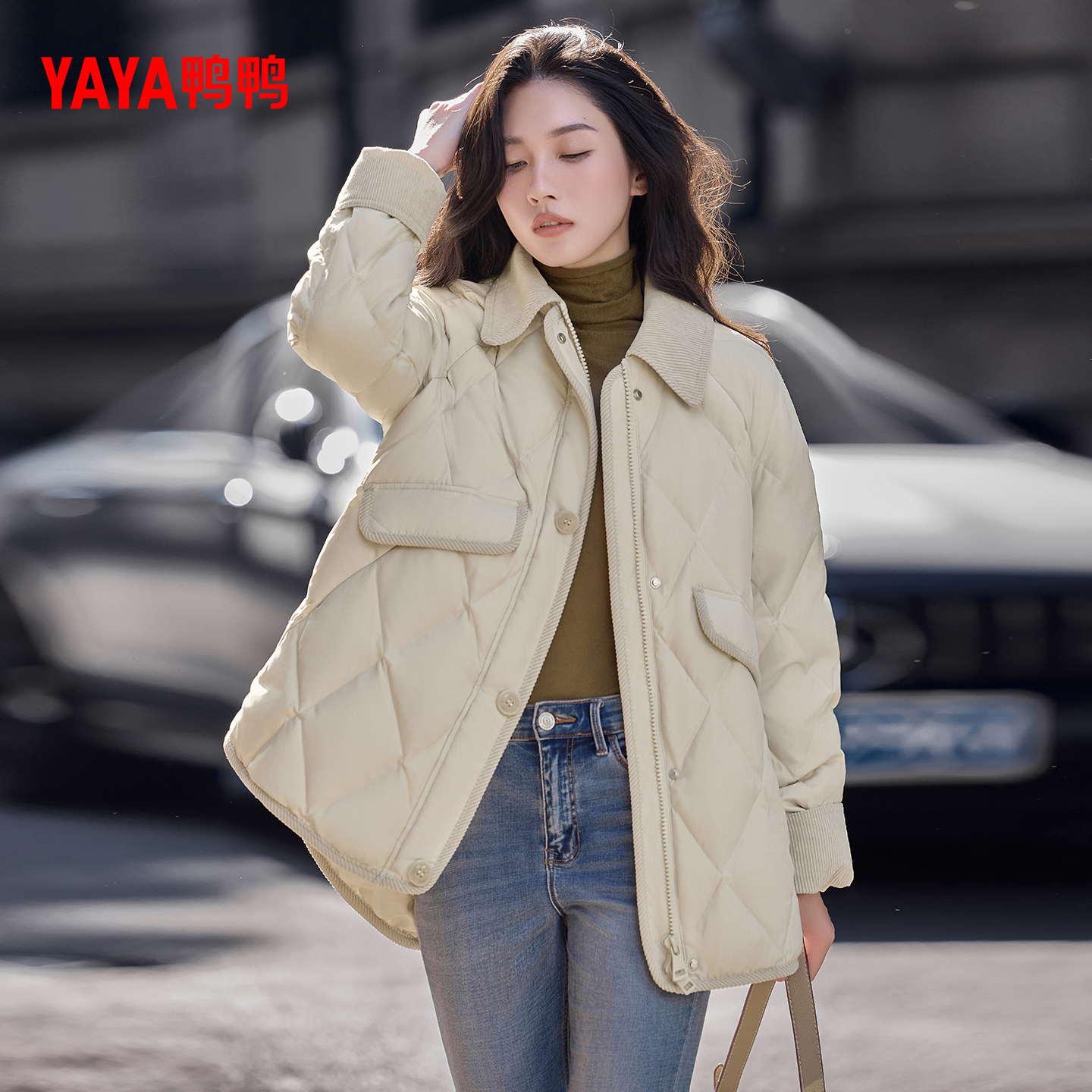 鸭鸭中长款羽绒服女士2025秋冬新款宽松百搭鸭绒加厚时尚保暖外套
